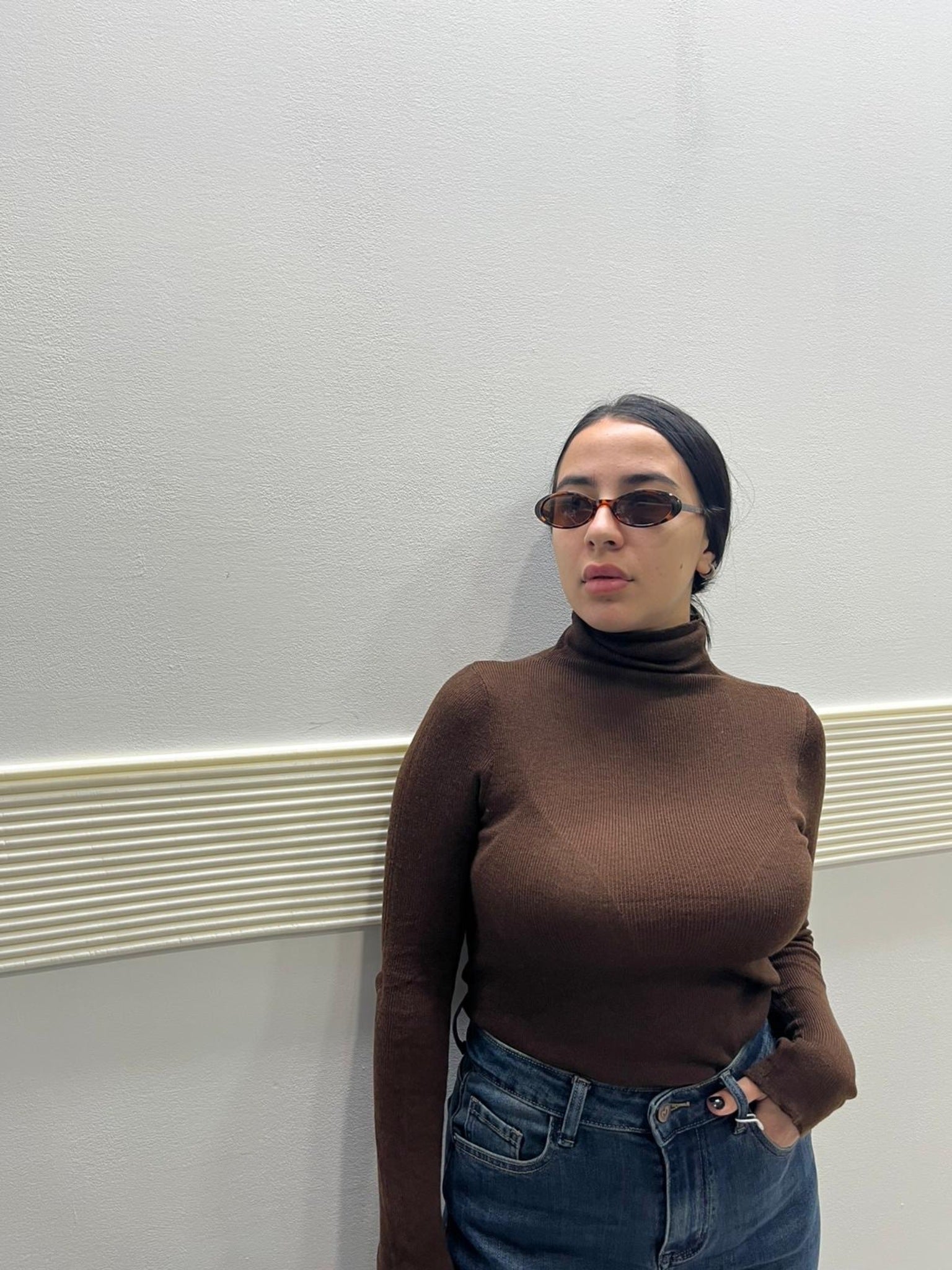 MAGLIONCINO COSTINE COLLO ALTO MARRONE
