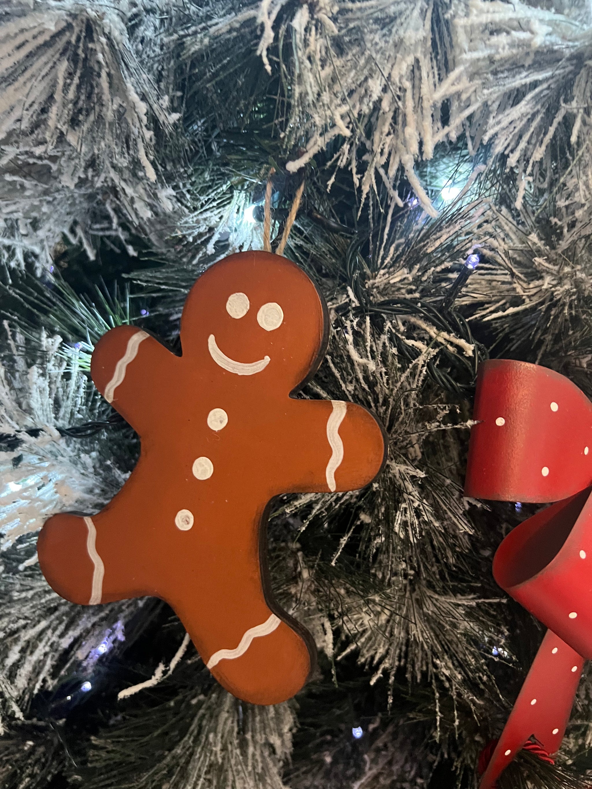 Omino pan di zenzero in legno e dipinto a mano da appendere
