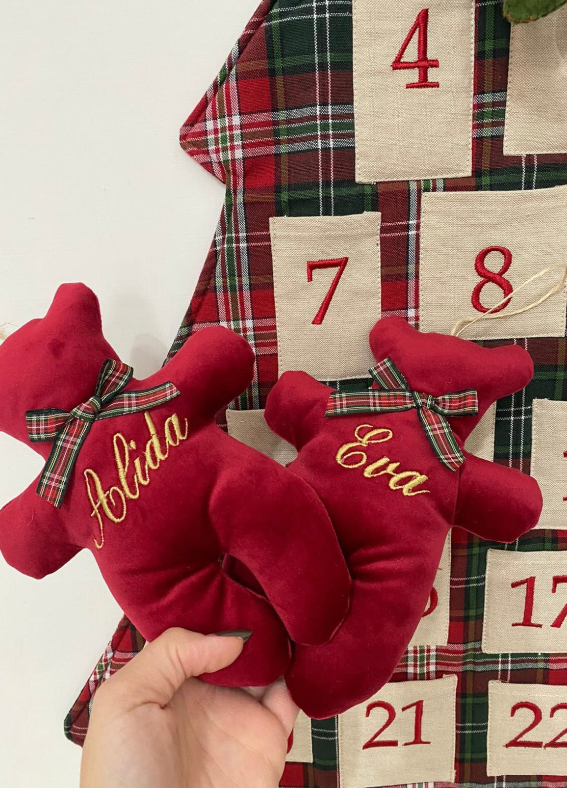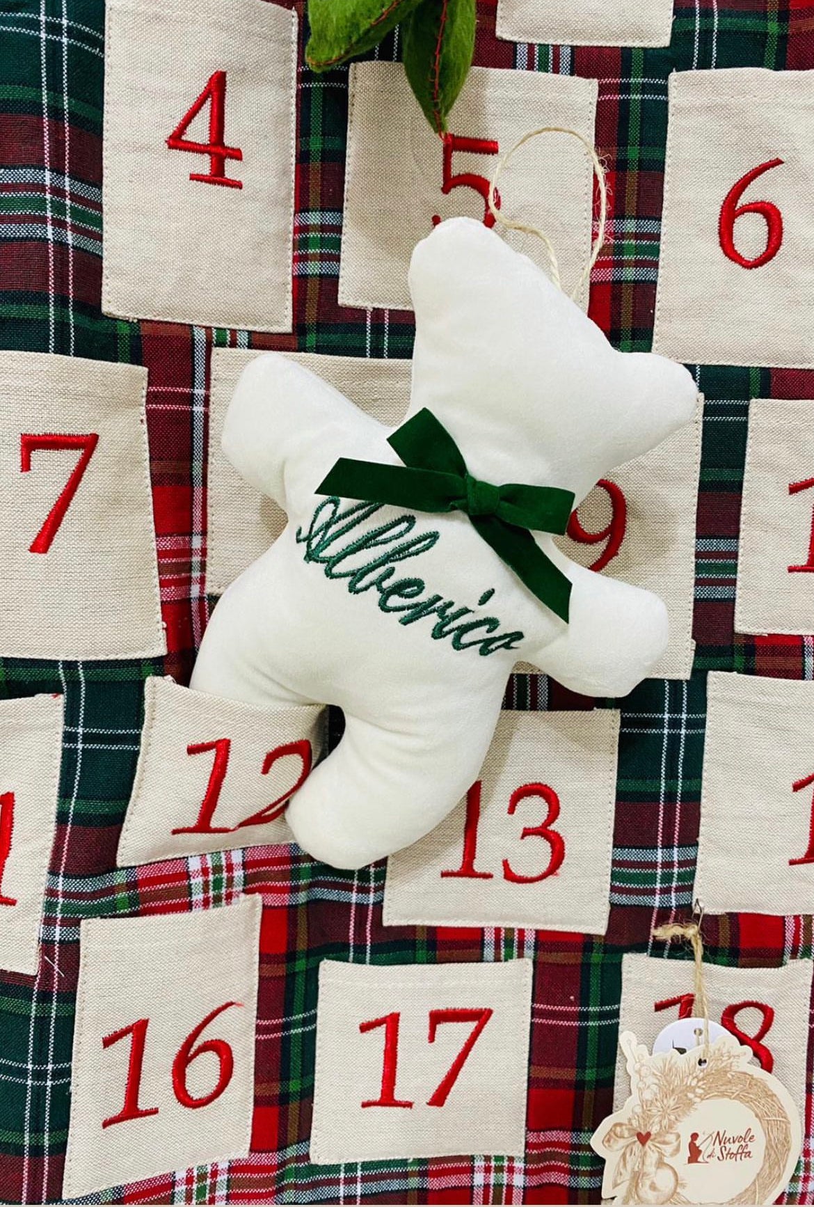 Orsetto in velluto da appendere. Colore fiocco casuale. Compreso di ricamo