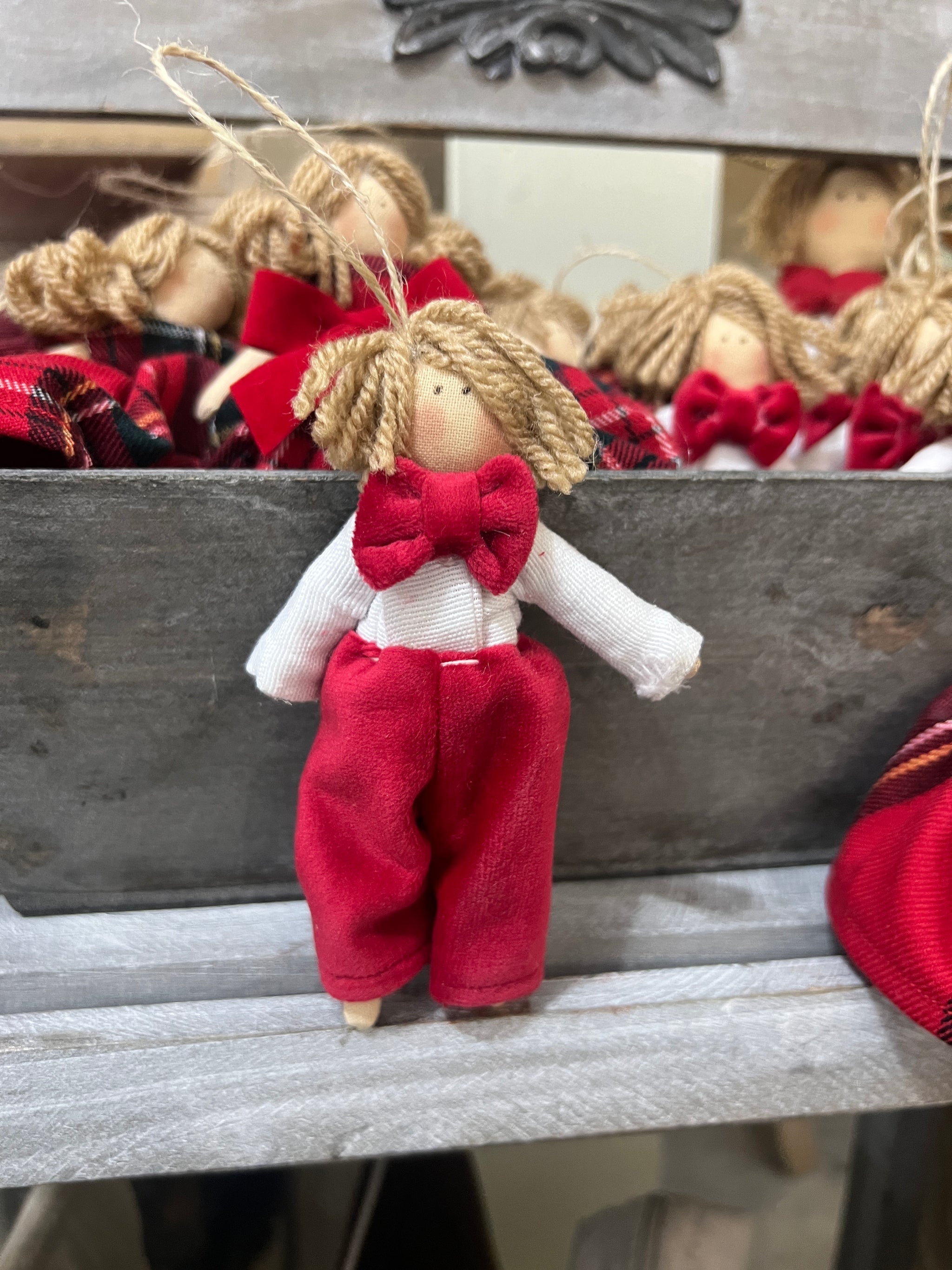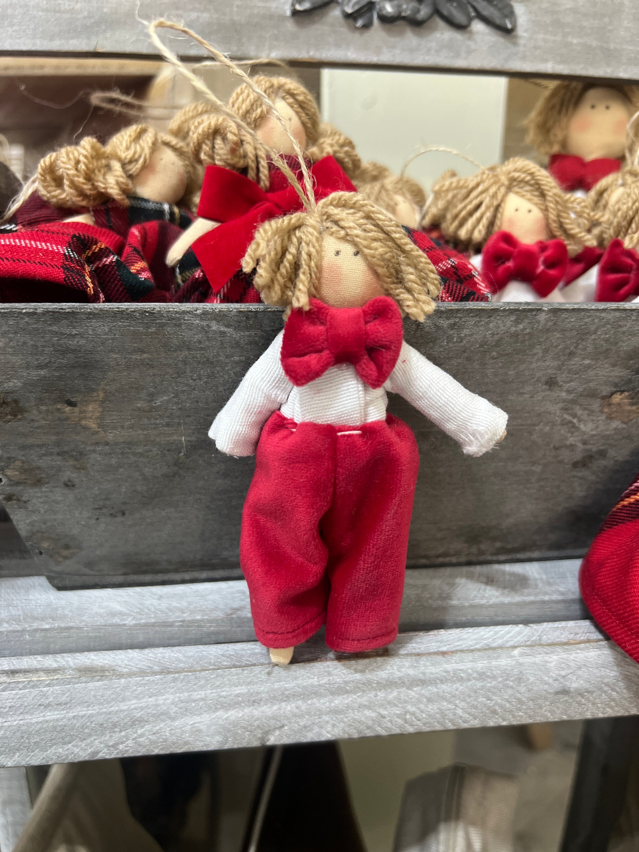 Principino di pezza fatto a mano con pantaloni in velluto da appendere