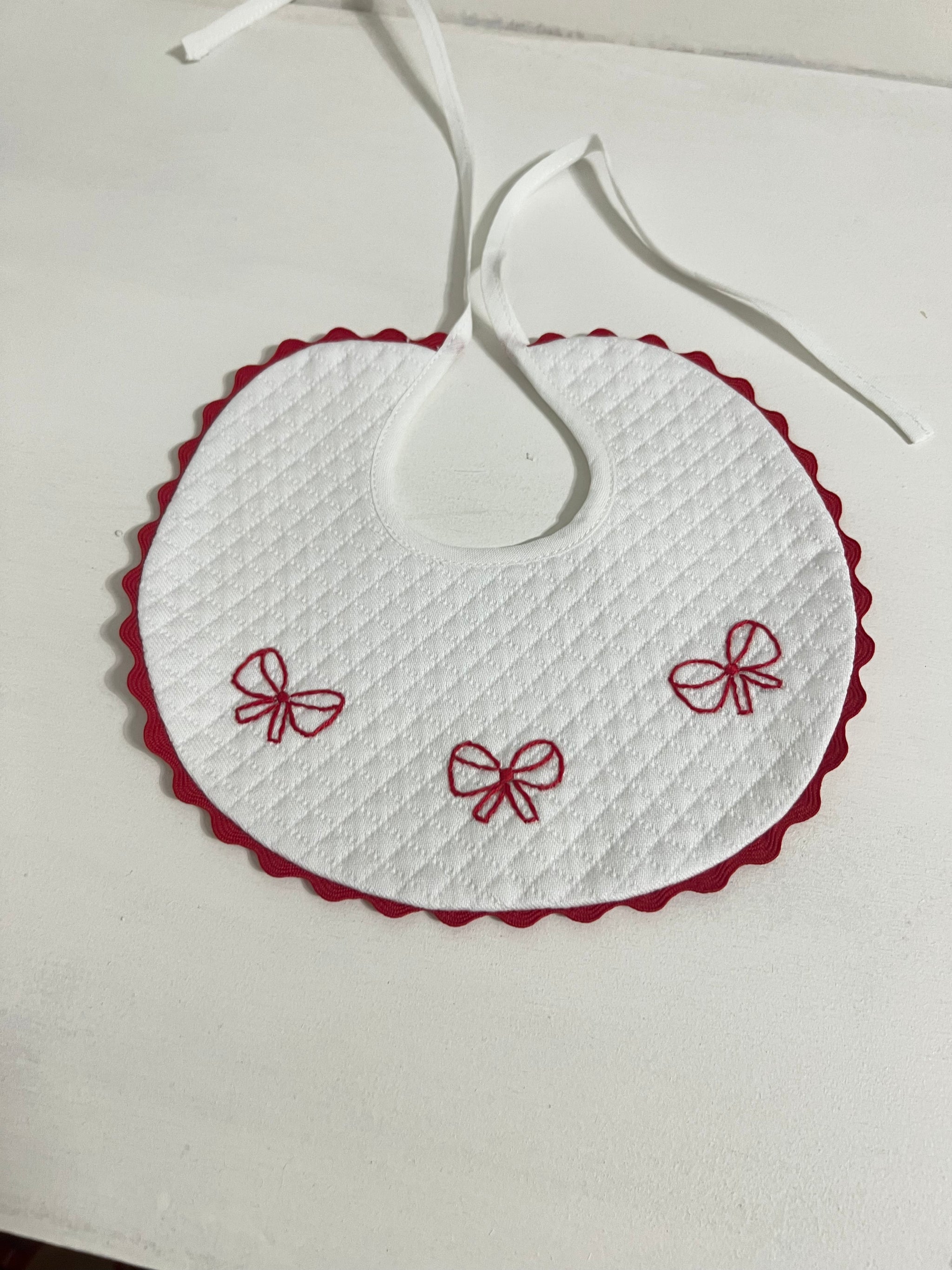 Bavetta in piquet trapuntato con 3 bellissimi fiocchi ricamati a mano