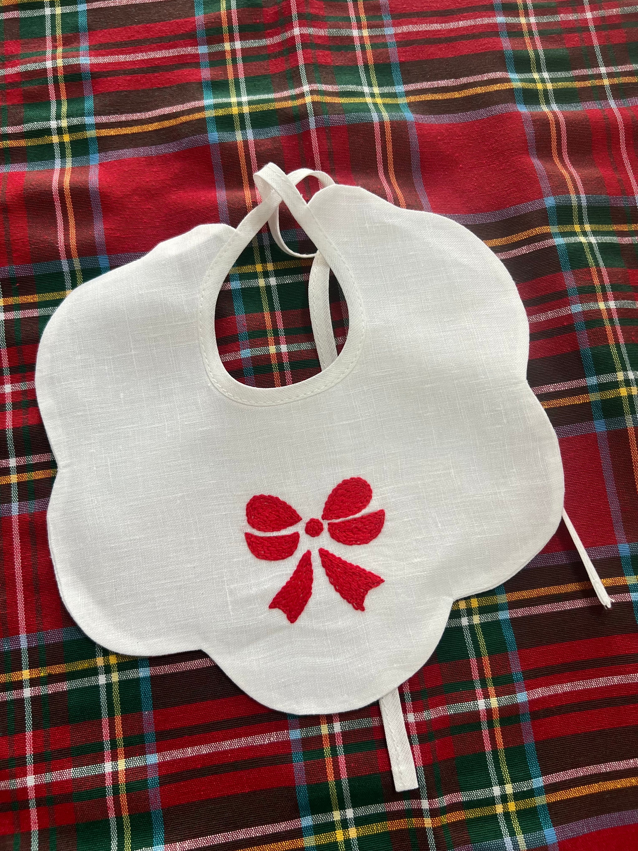 Bavetta onda in puro lino con fiocco ricamato a mano
