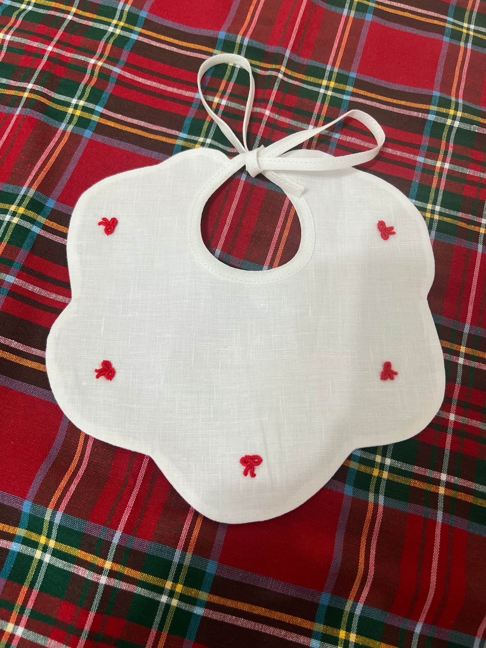Bavetta in puro Lino con fiocchetti ricamati a mano