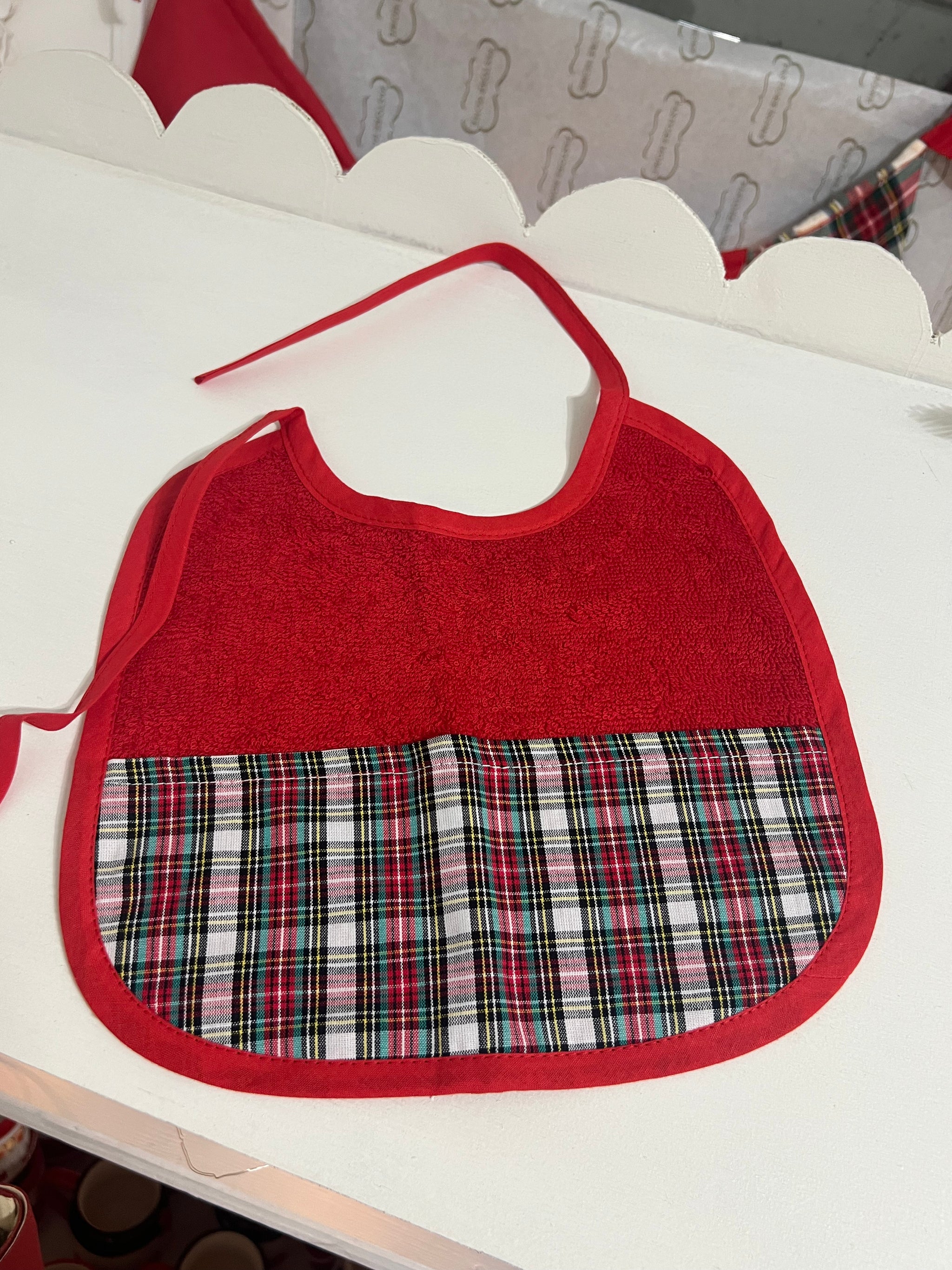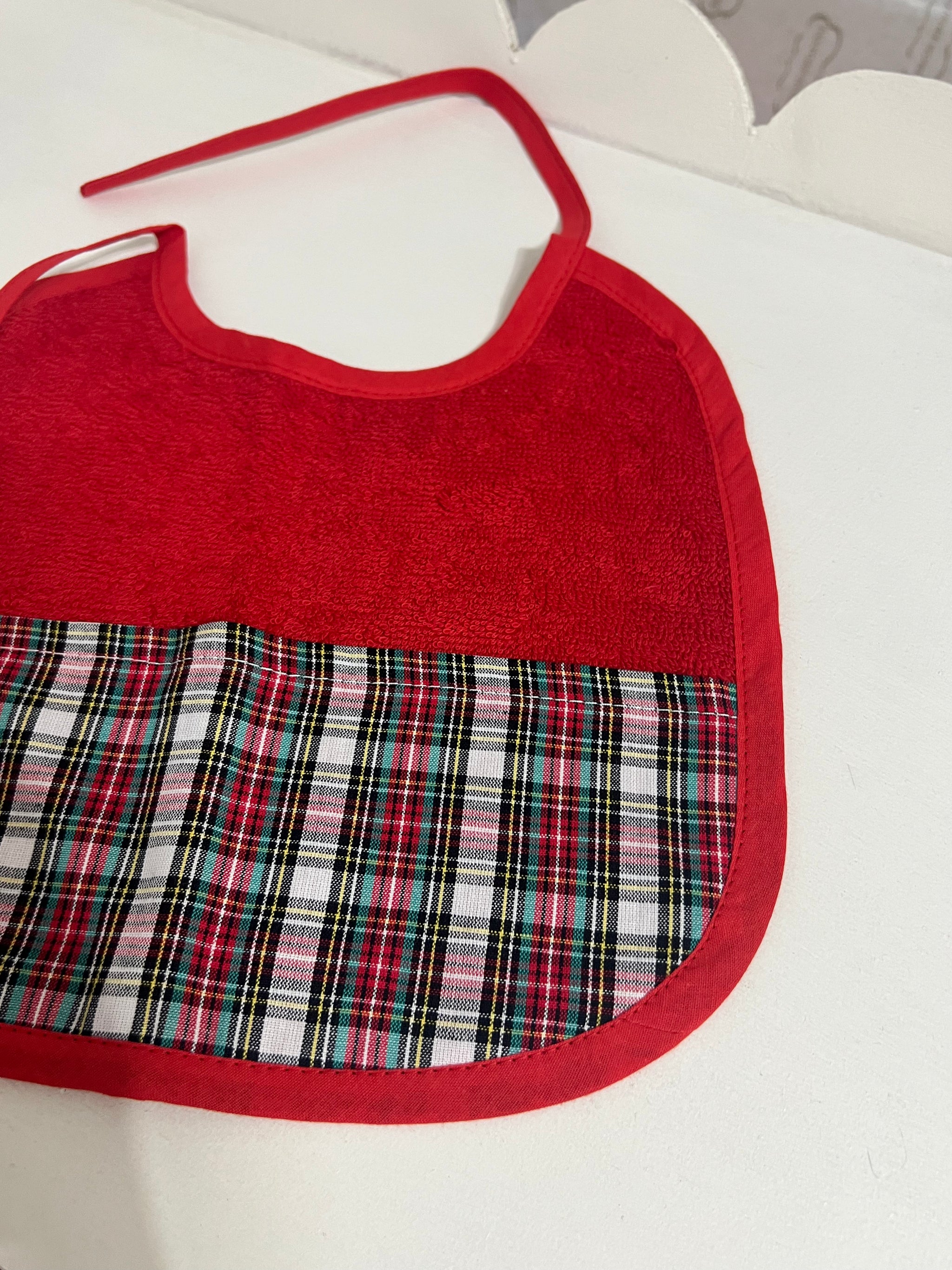 Bavetta in spugna con fascia in cotone fantasia tartan. Compreso di personalizzazione