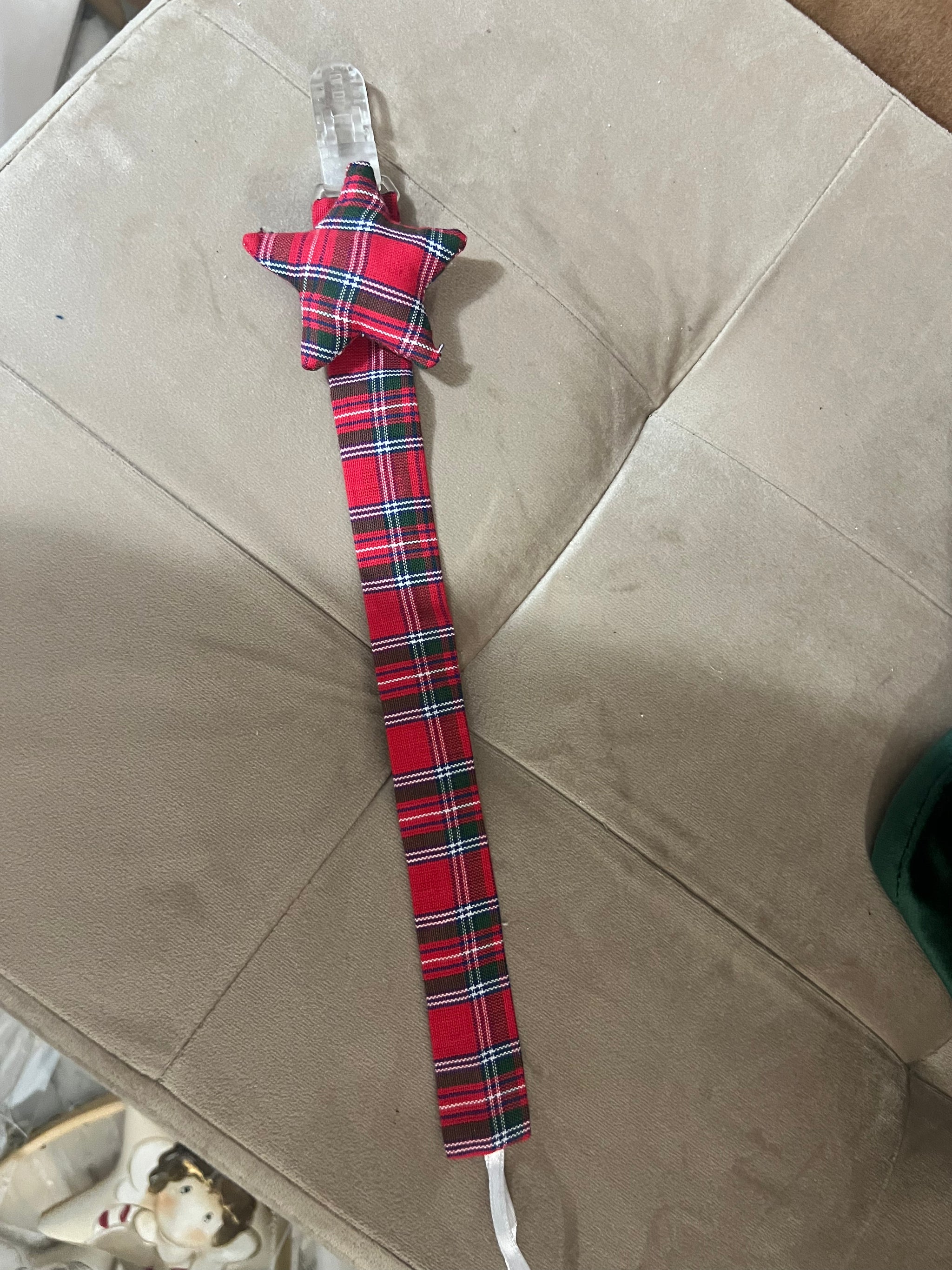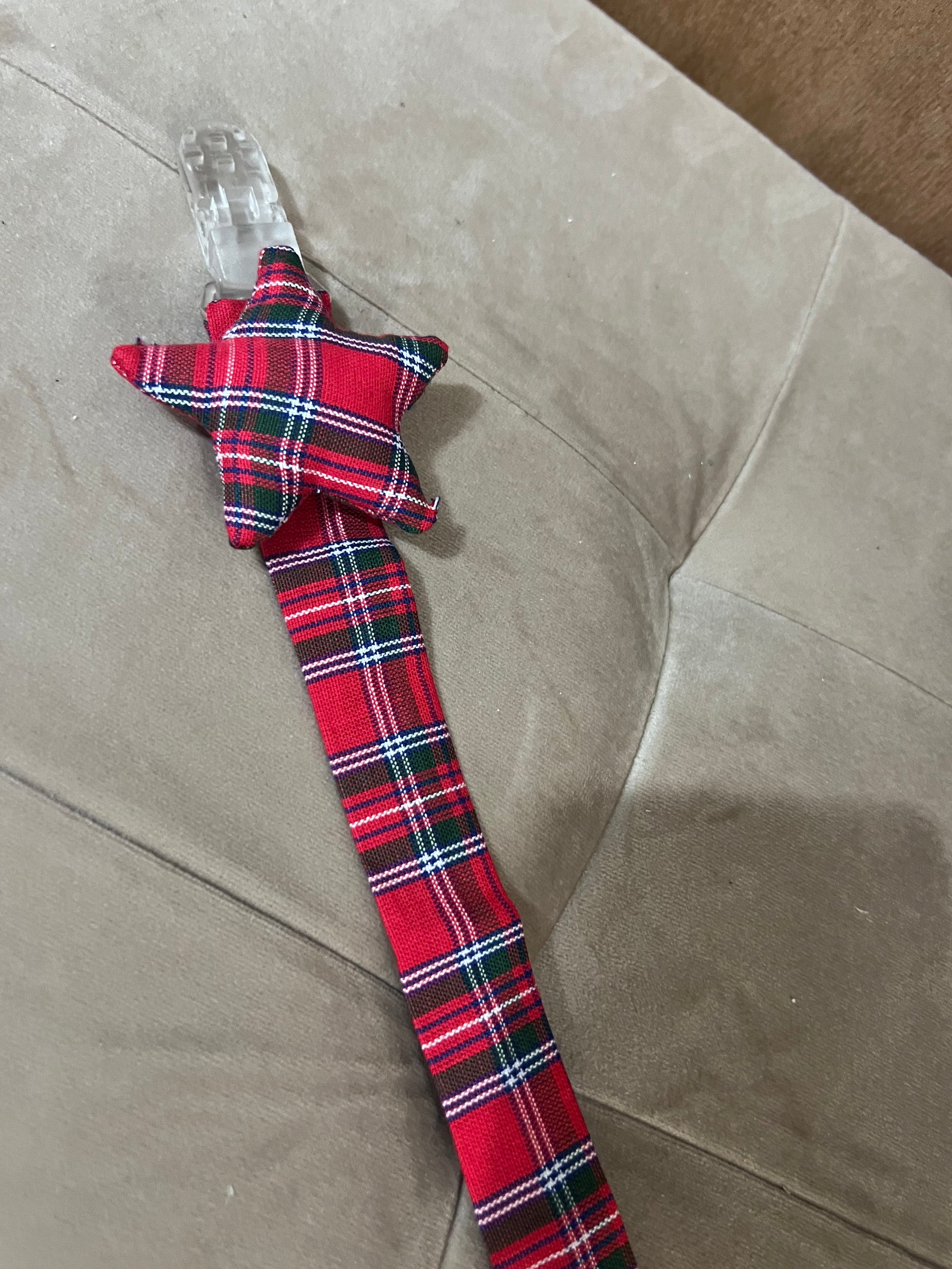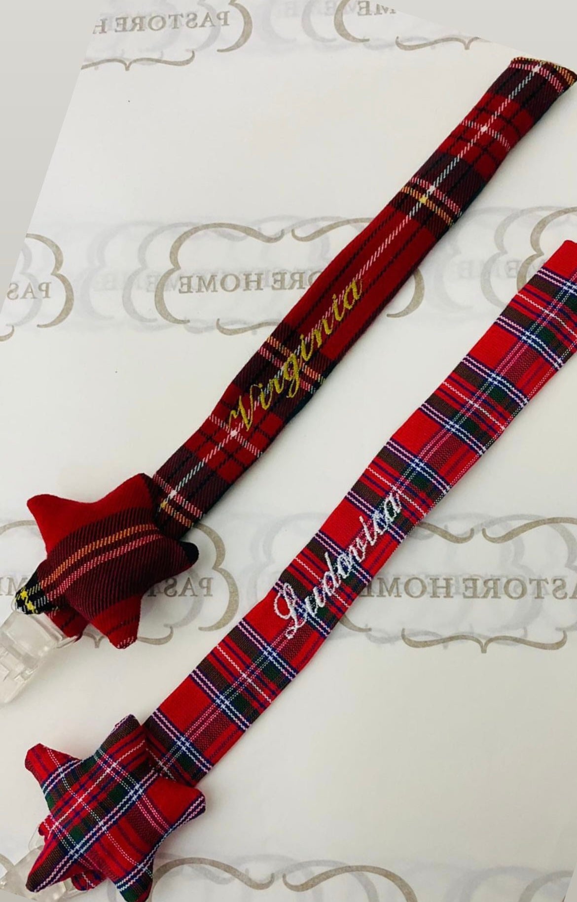 Portaciuccio in piquet di cotone fantasia tartan rosso con stella.
