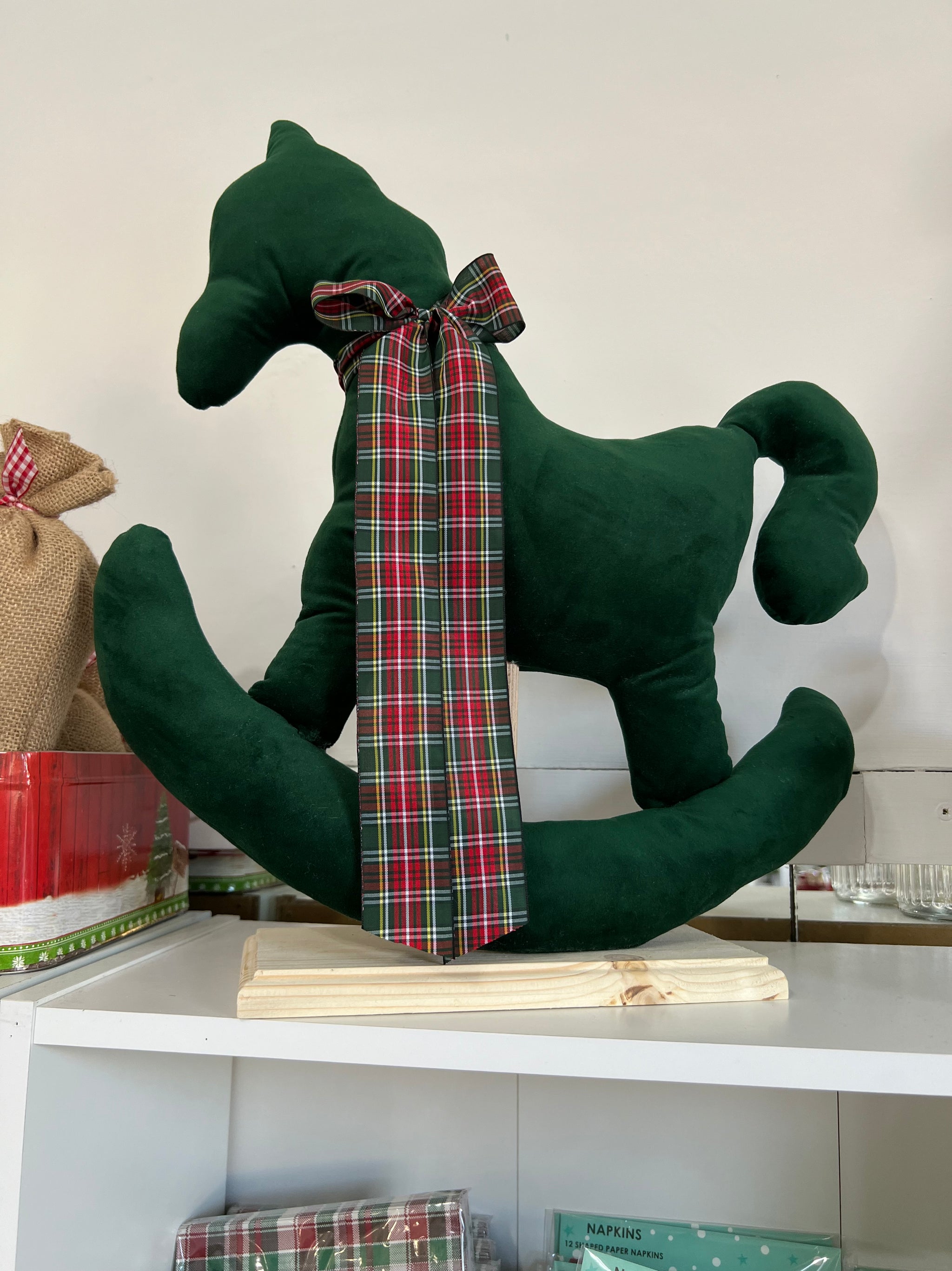 Cavallo a dondolo in velluto su base di legno