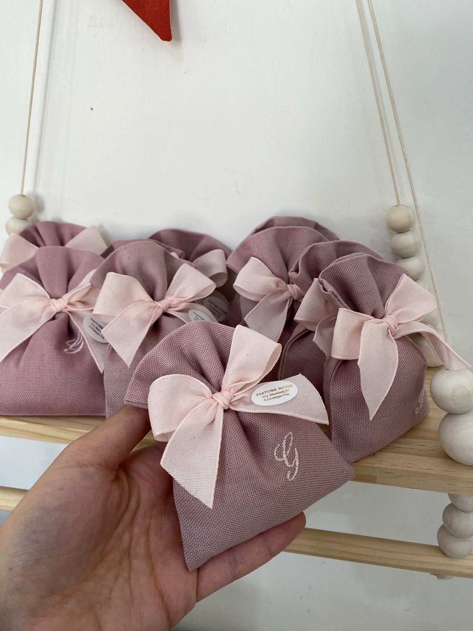 Ogni sacchetto è confezionato con cura artigianale e può essere personalizzato con iniziali o nome rendendolo unico e significativo.