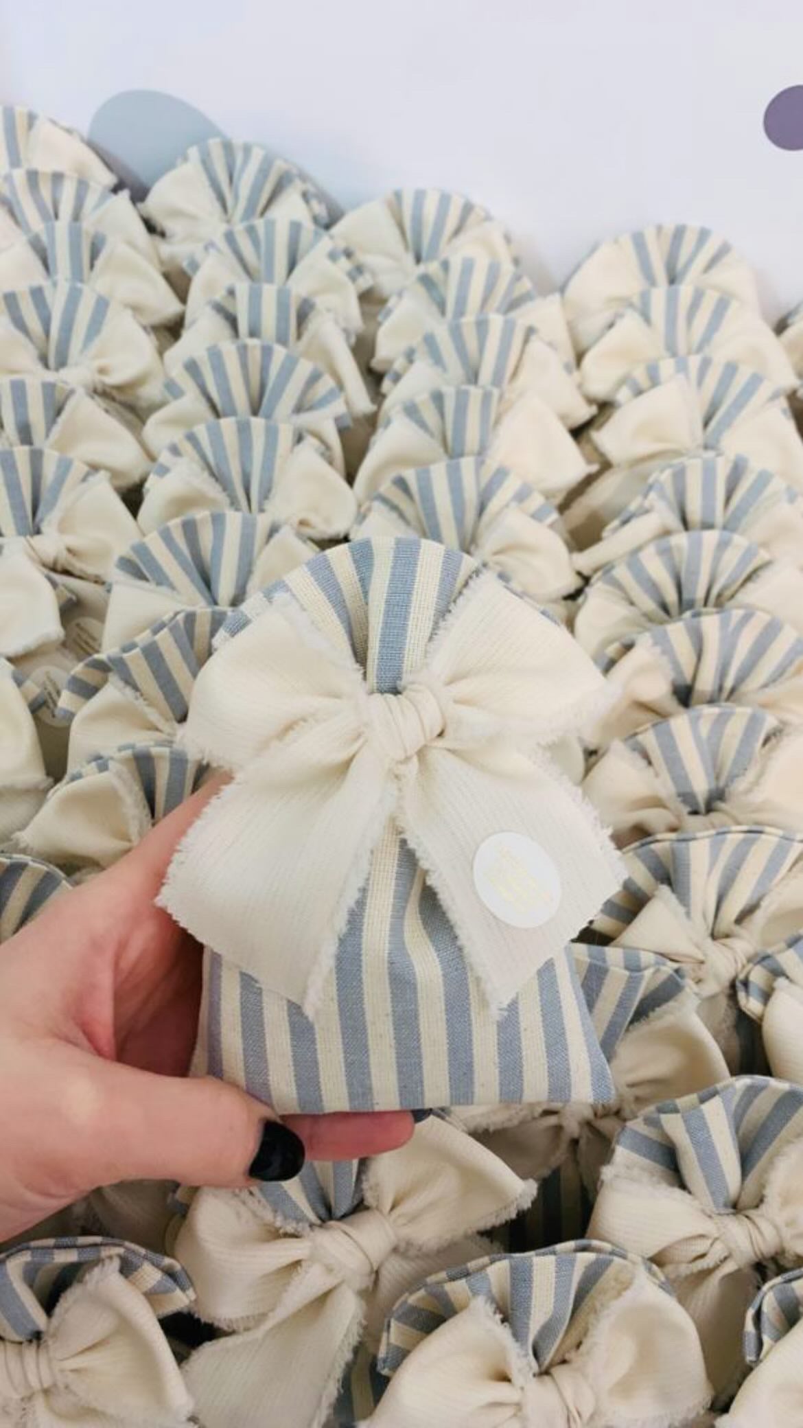 Sacchetto realizzato a mano in cotone 100% , impreziosito da un morbido fiocco e personalizzabile con nome o inziali . Ideale come bomboniera nascita,battesimo…