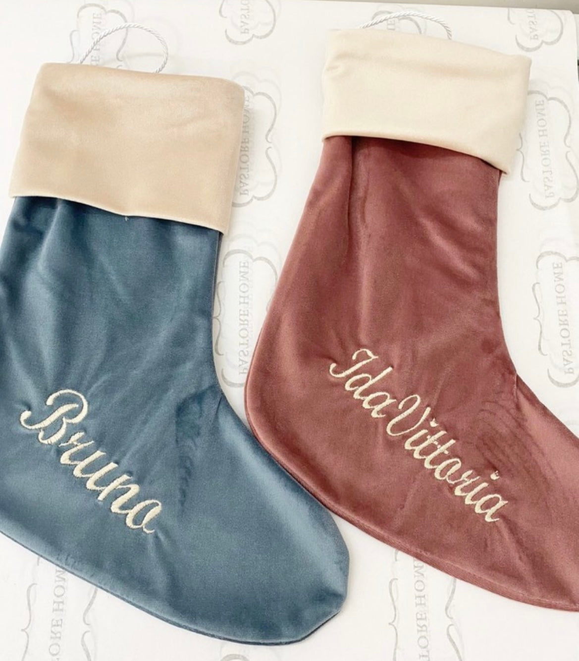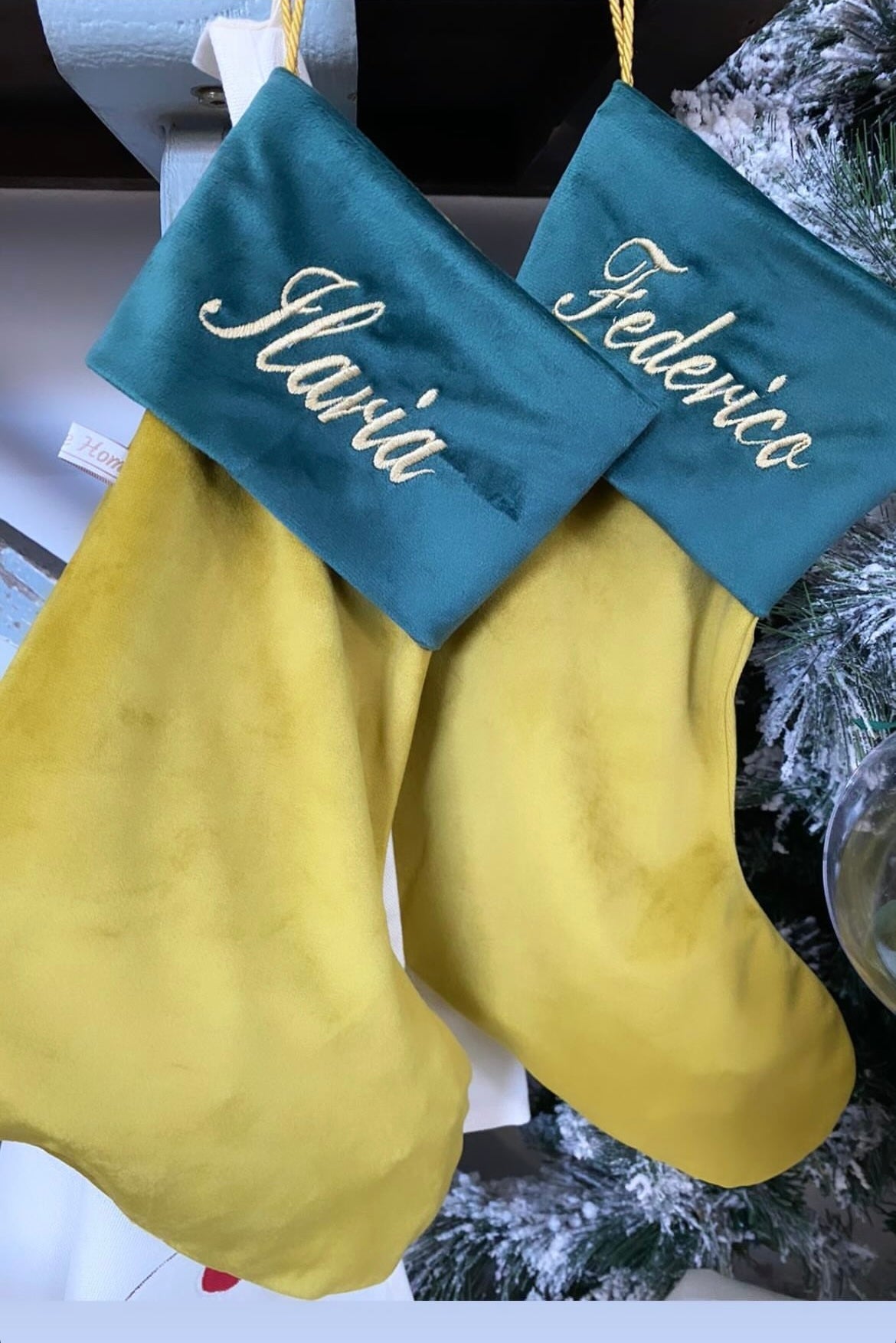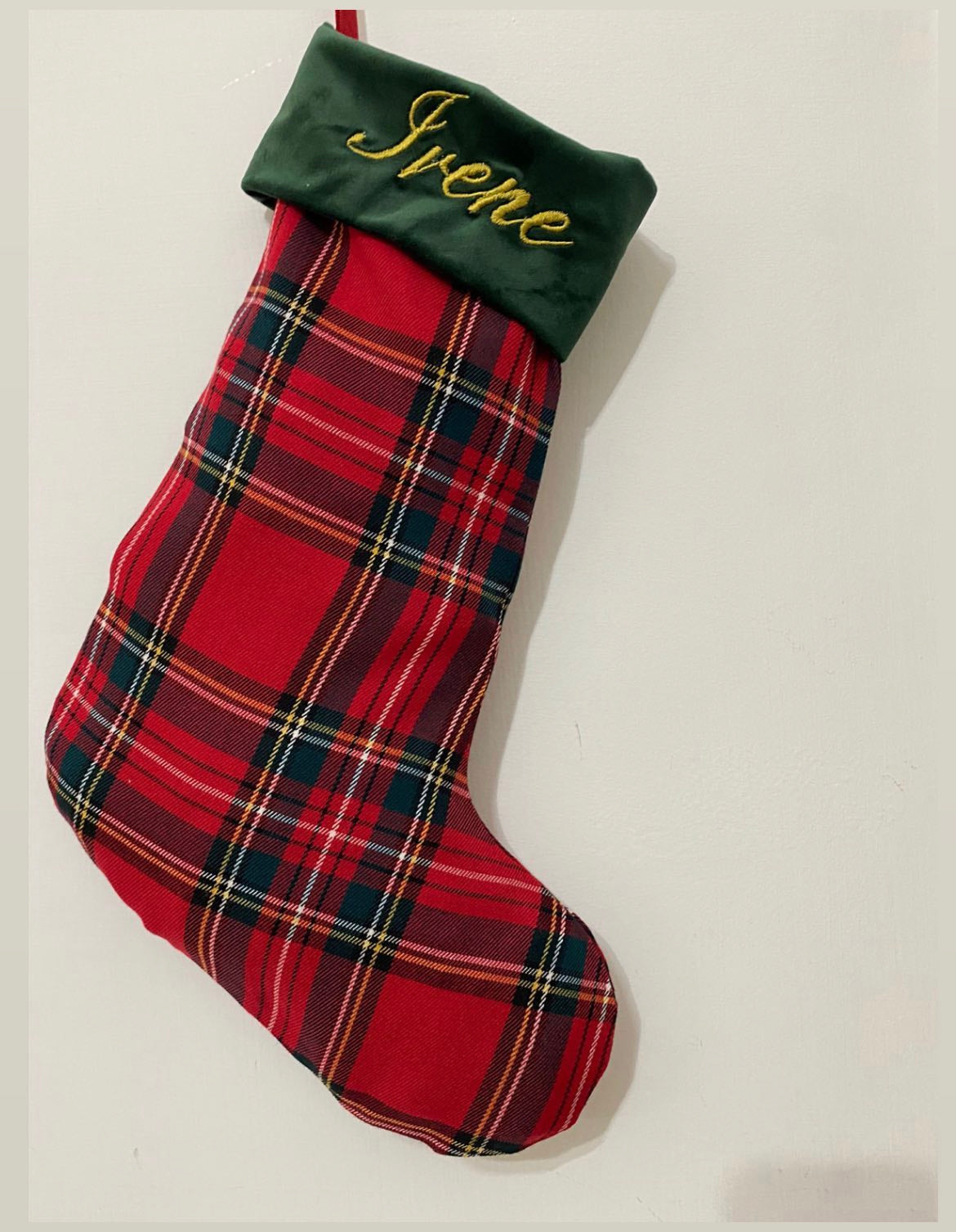 Calza della befana sartoriale in velluto o tartan nelle misure: Piccola H30cm Media H37cm Grande H47cm. Nel prezzo è compresa la personalizzazione.