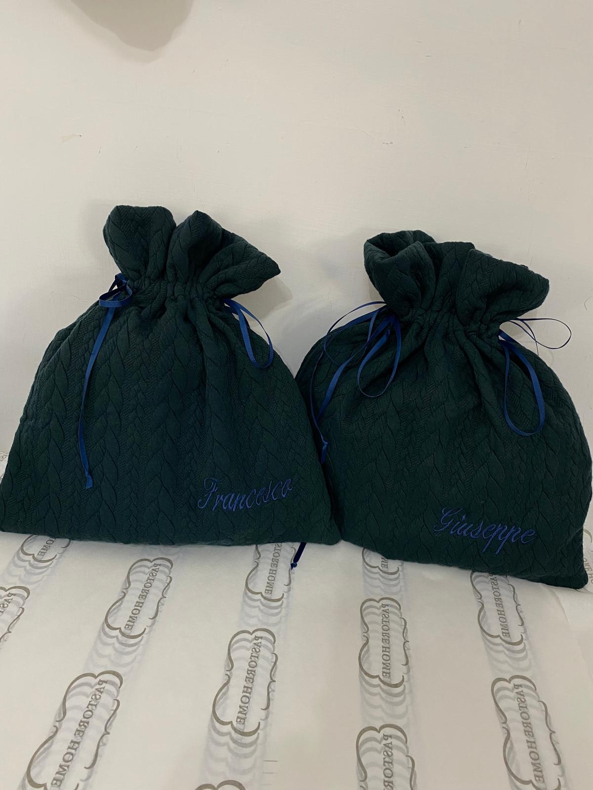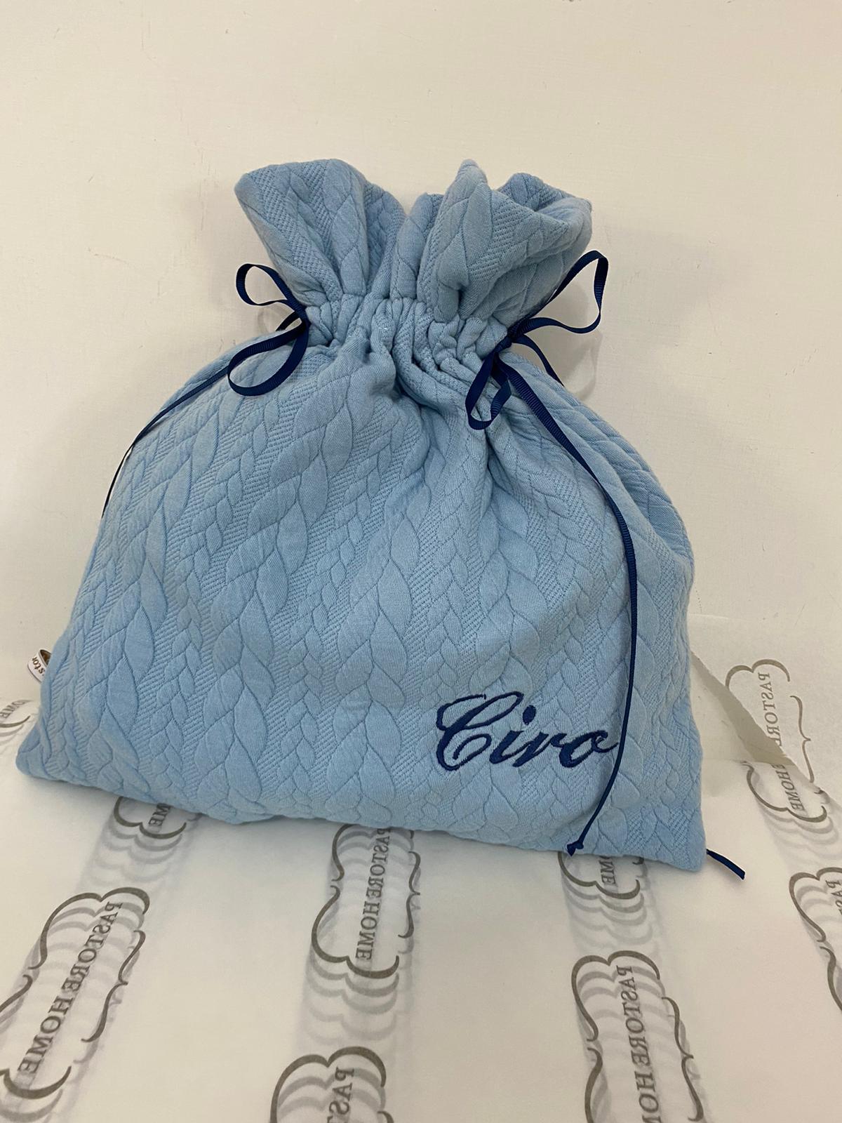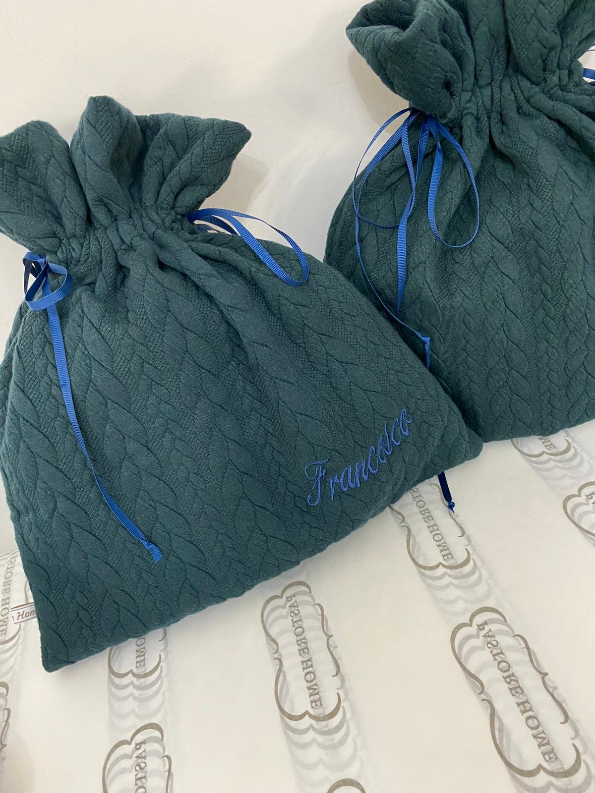 Sacco treccia con coulisse , personalizzabile con nome o inziali. Misura 35x33 circa