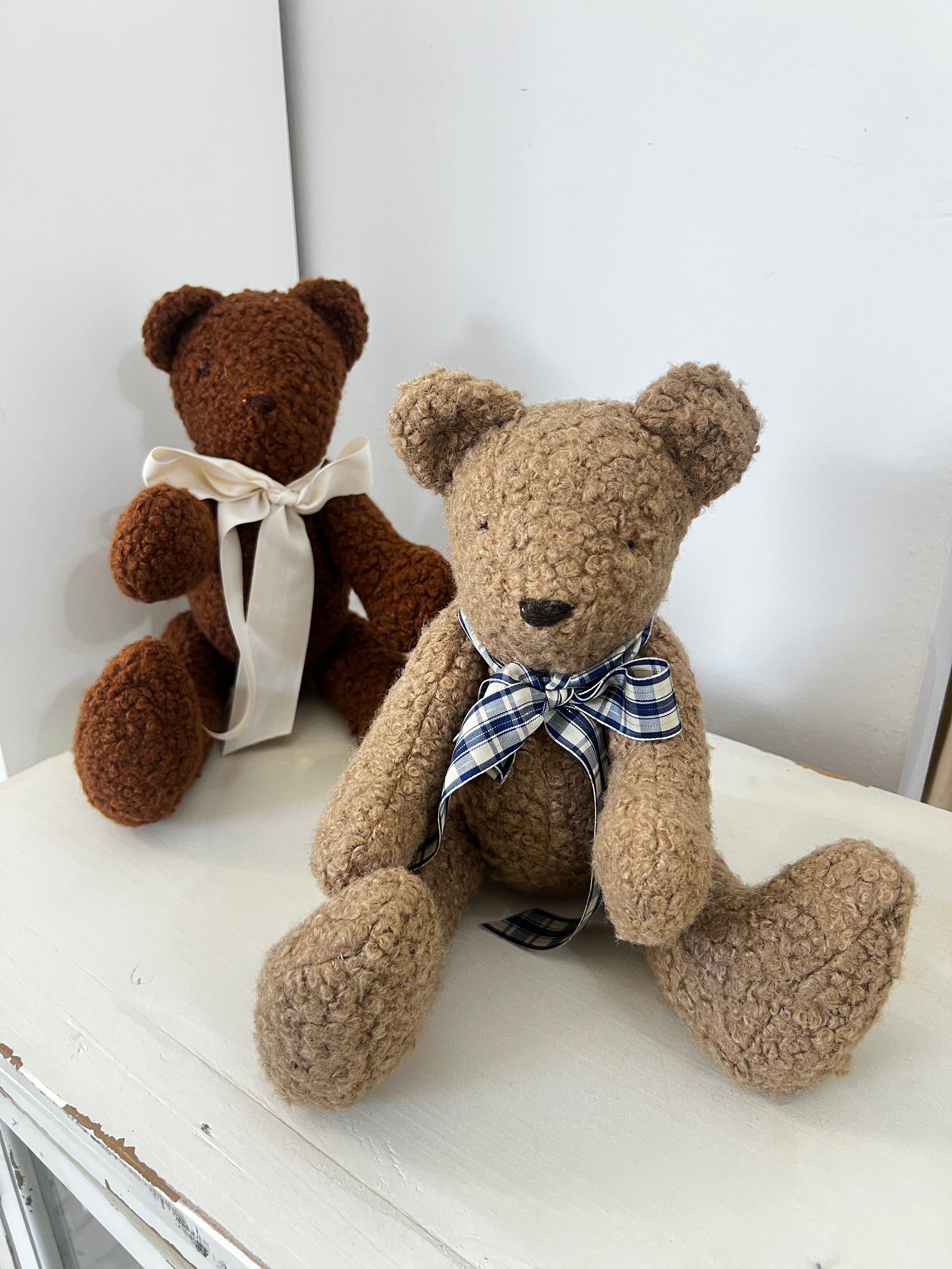 Orsetto sartoriale in tessuto bouclè , personalizzabile sul nastro .