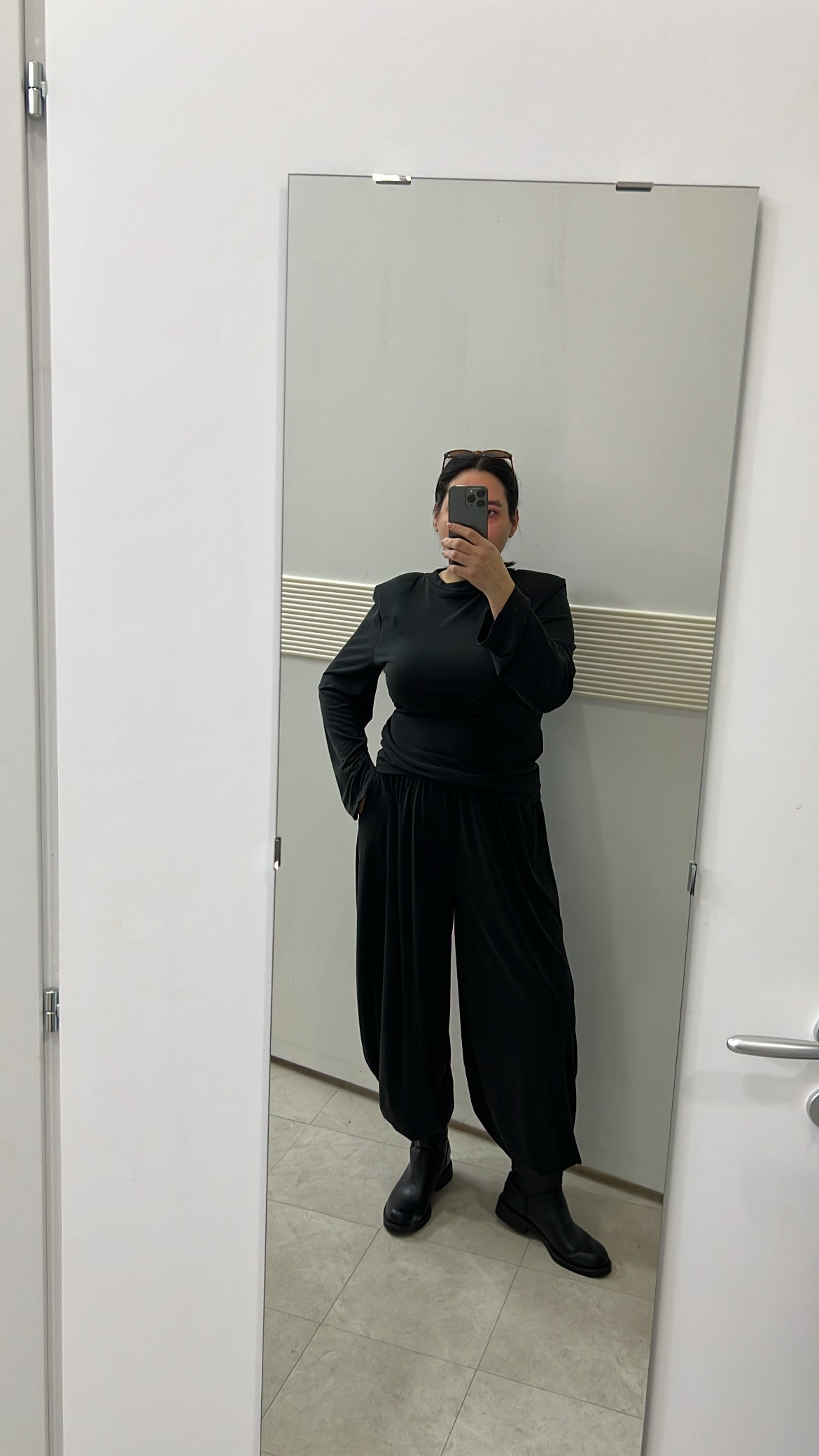 Coordinato in cotone con maglia con spalline e pantaloni ballon con elastico in vita e orlo