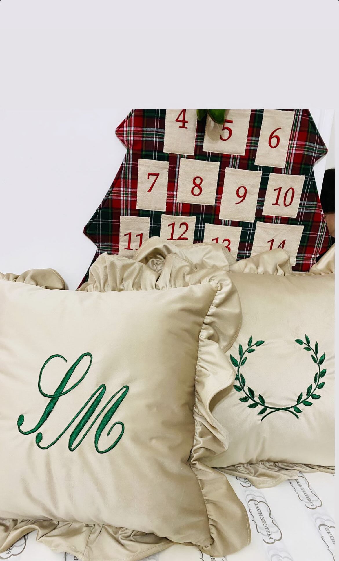 Cuscino con rouches in velluto  disponibile in due misure. Puoi scegliere di personalizzarlo con nome/lettera. Prodotto sartoriale.