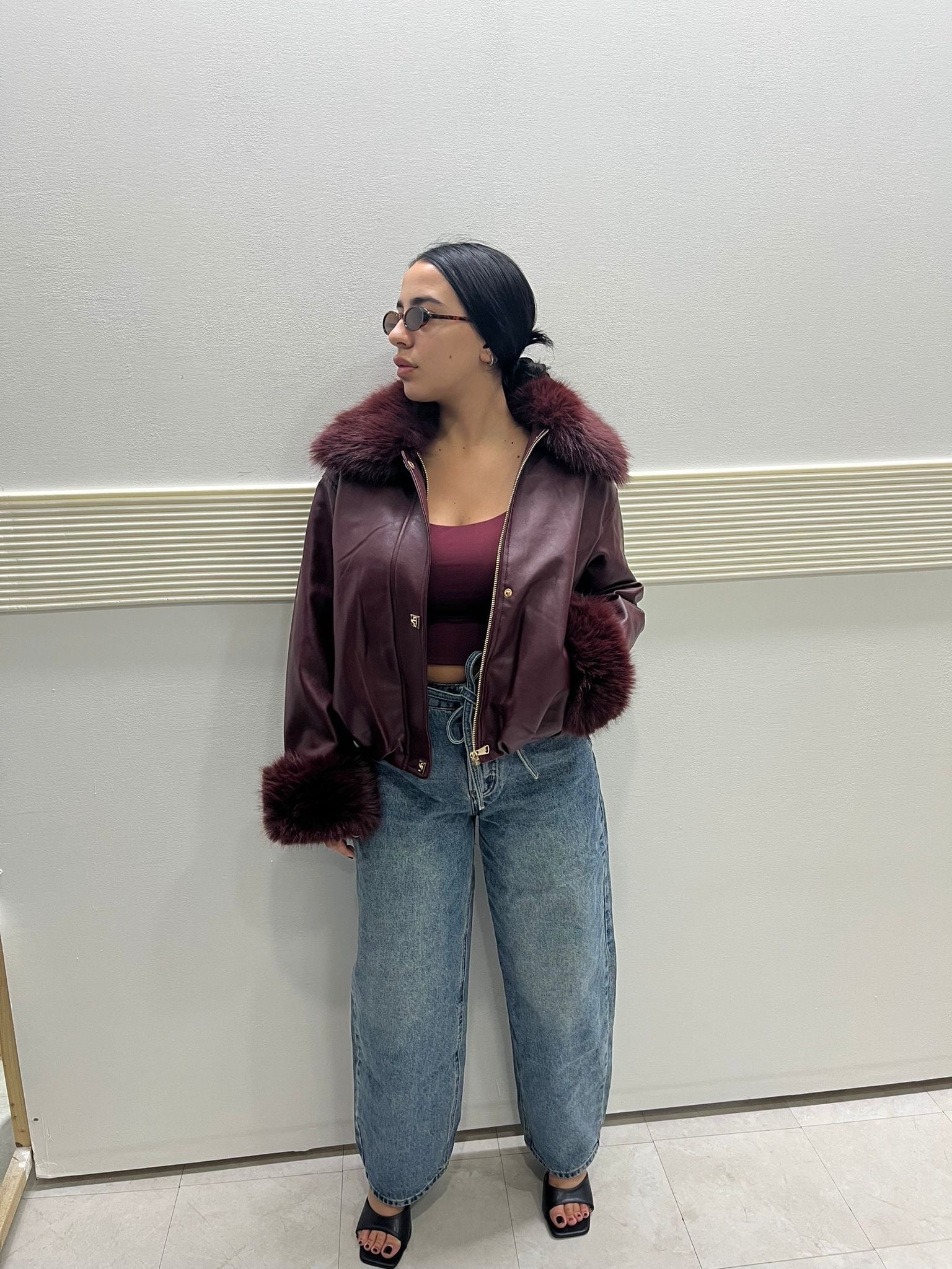 Giubbotto in ecopelle con collo e polsi in eco pelliccia