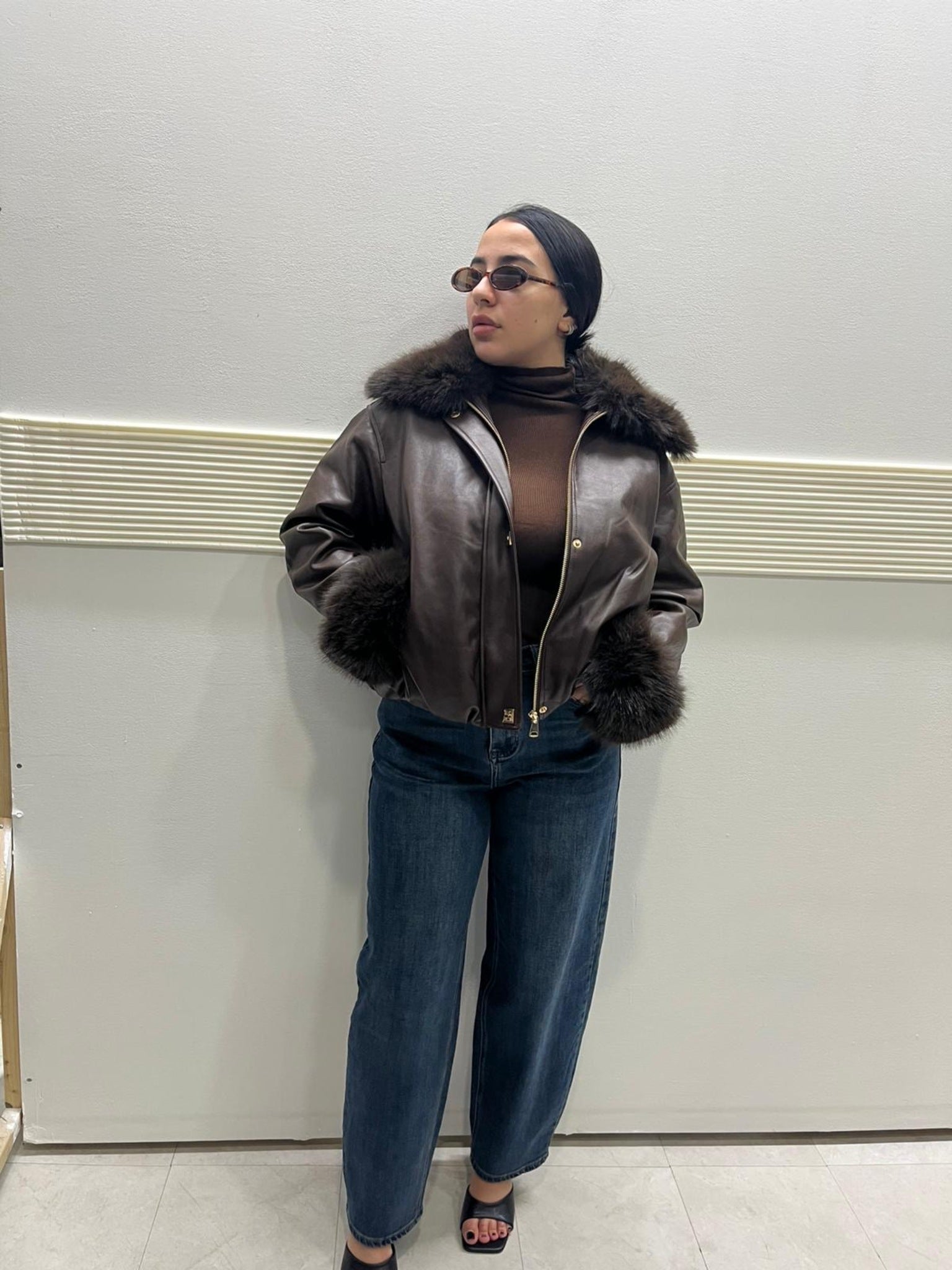 Giubbotto in ecopelle con collo e polsi in eco pelliccia