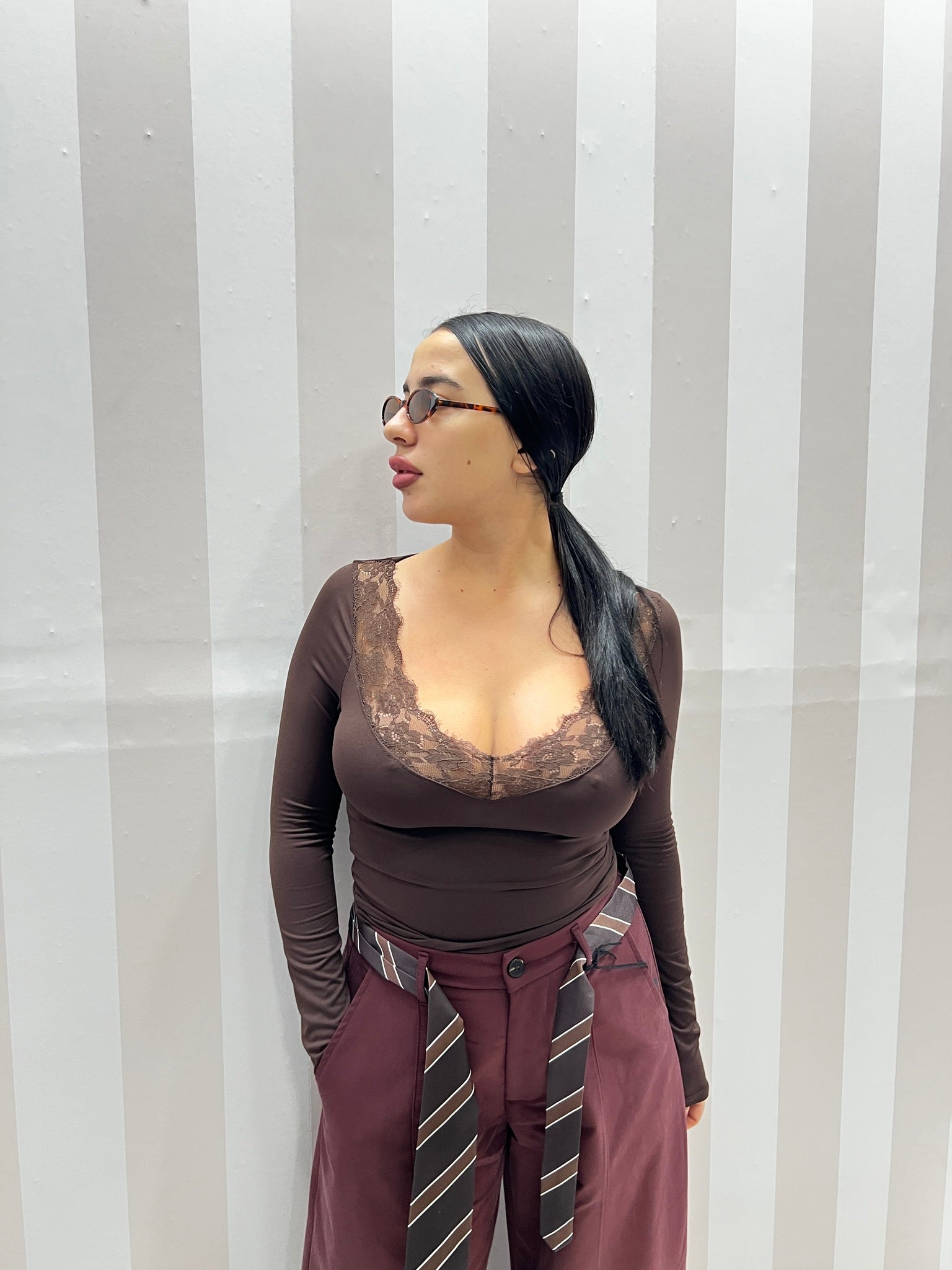 BODY SCOLLO A V MARRONE