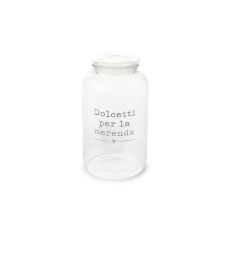 Barattolo in vetro borosilicato con scritta dolcetti per la merenda , linea my home nuvole di stoffa
