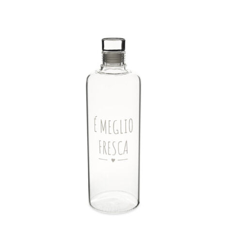Bottiglia in vetro borosilicato disponibile con due scritte . Collezione my home nuvole di stoffa . Misura 1000ml