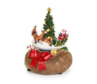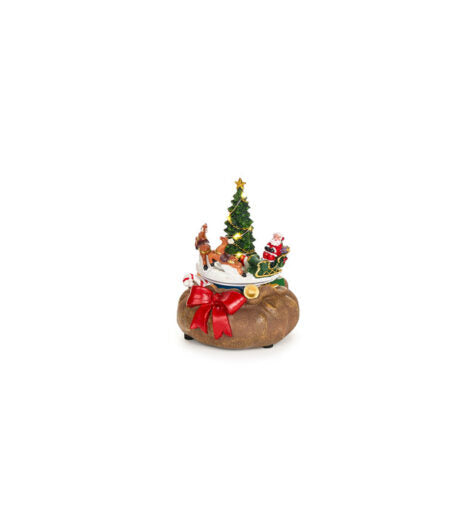 Carillon sacco con doni e treno in resina e led , fa parte della collezione bear WONDERLAND nuvole di stoffa