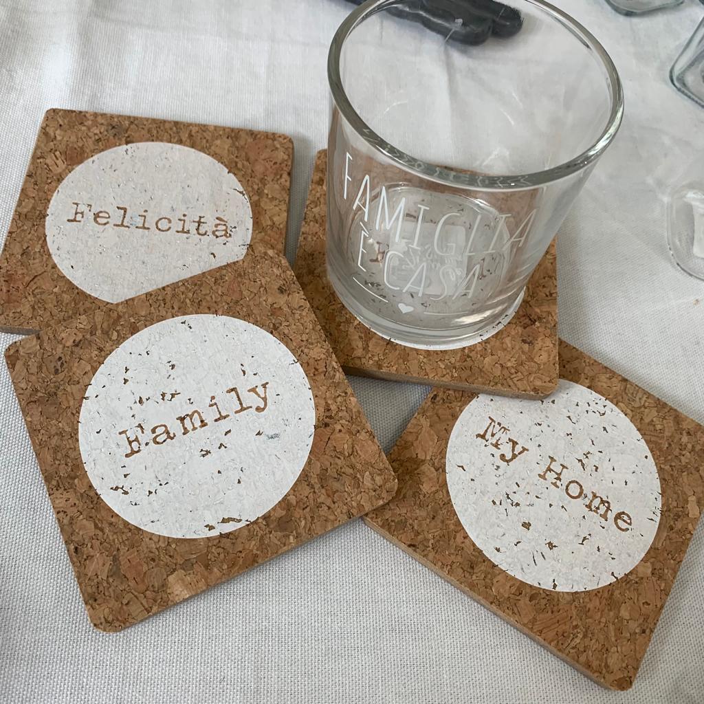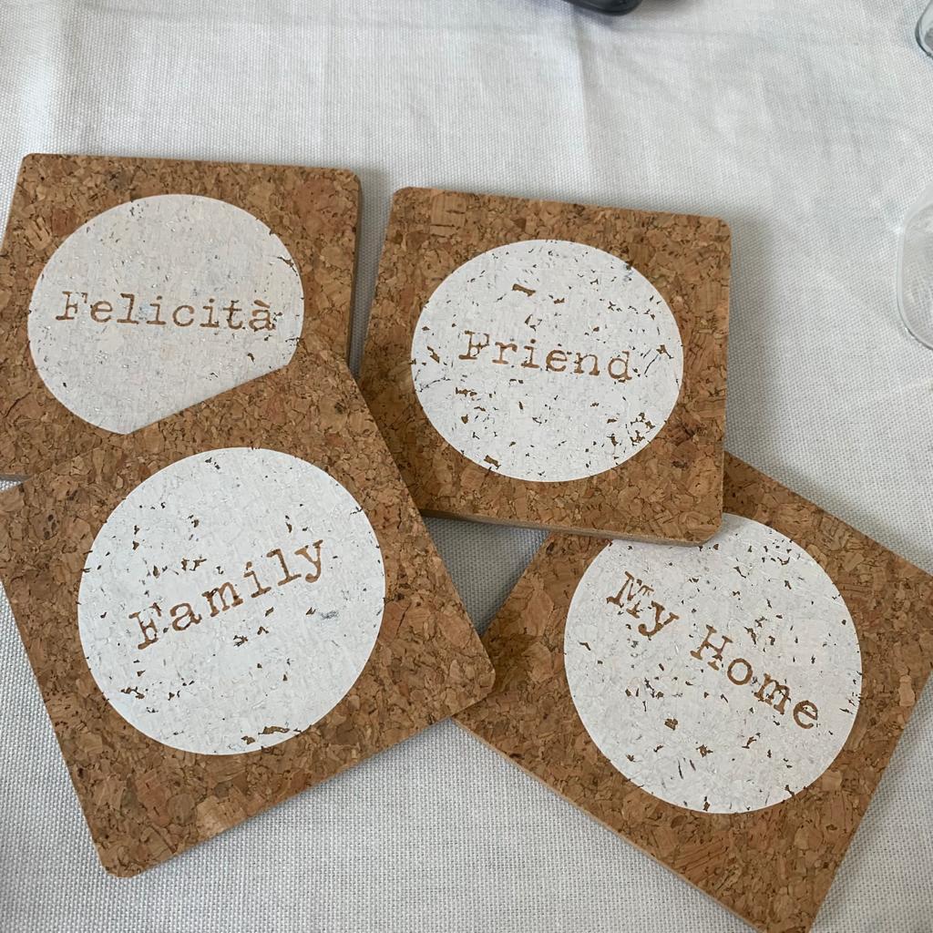 Sottobicchiere in sughero/legno set da 4 parole miste