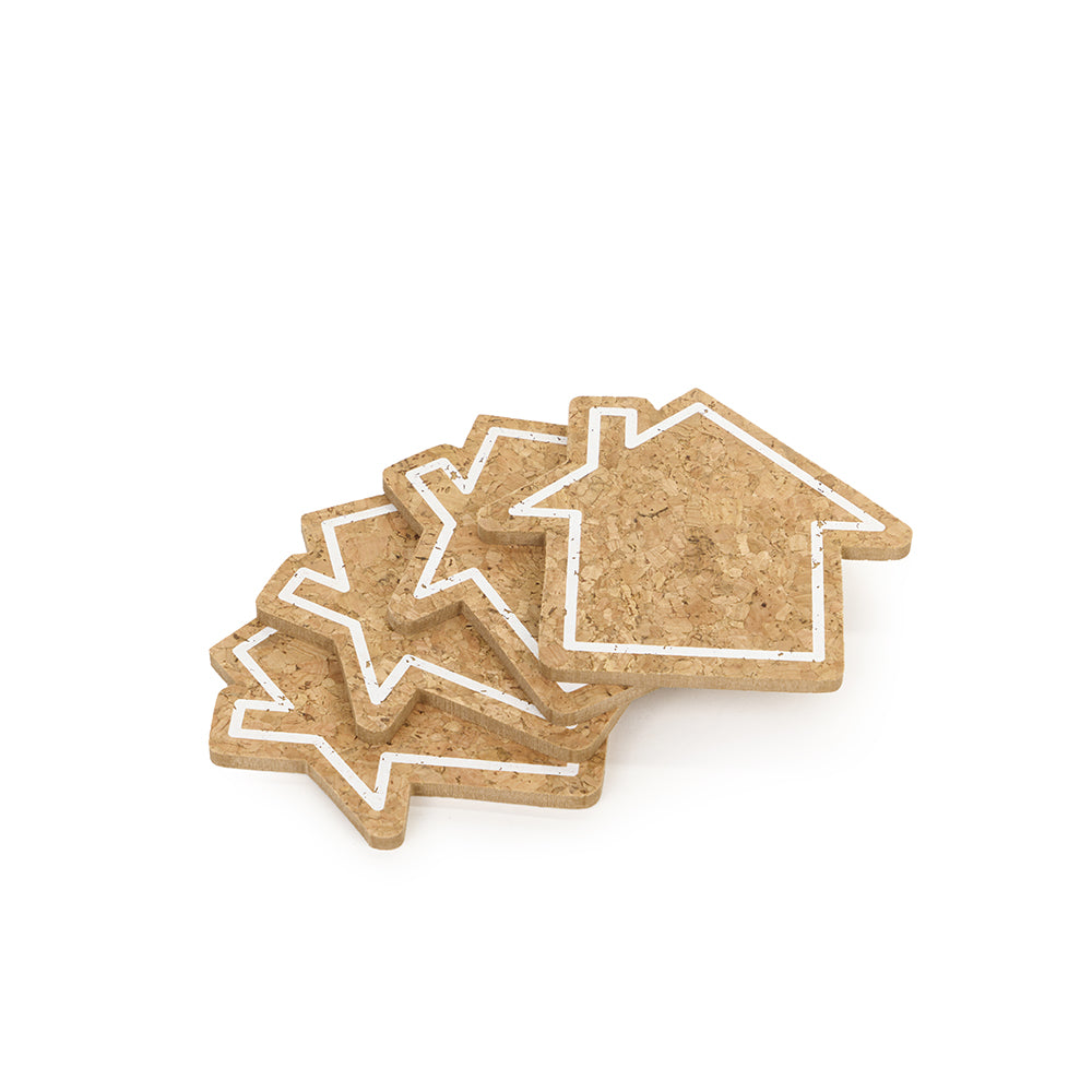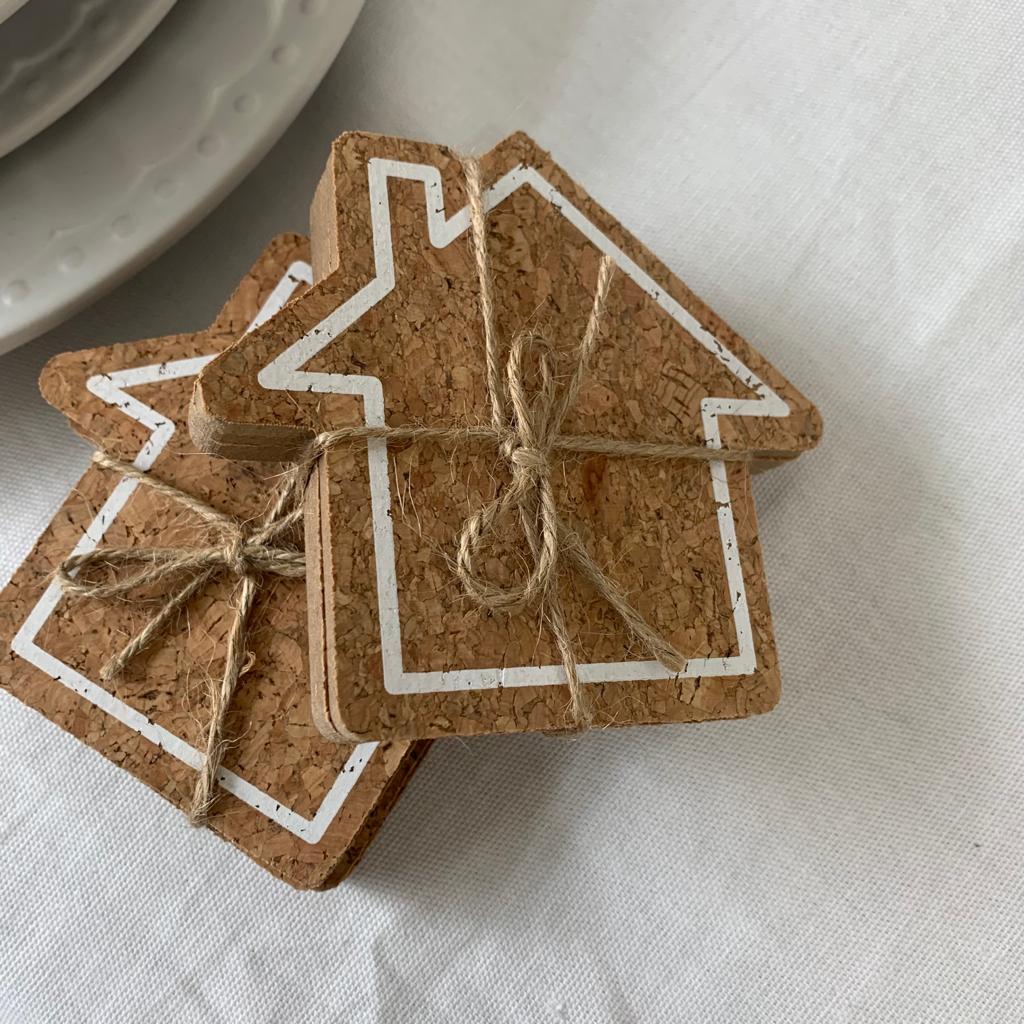 Sottobicchiere casa in sughero/legno set da 4. Misura 11x10x2.5cm