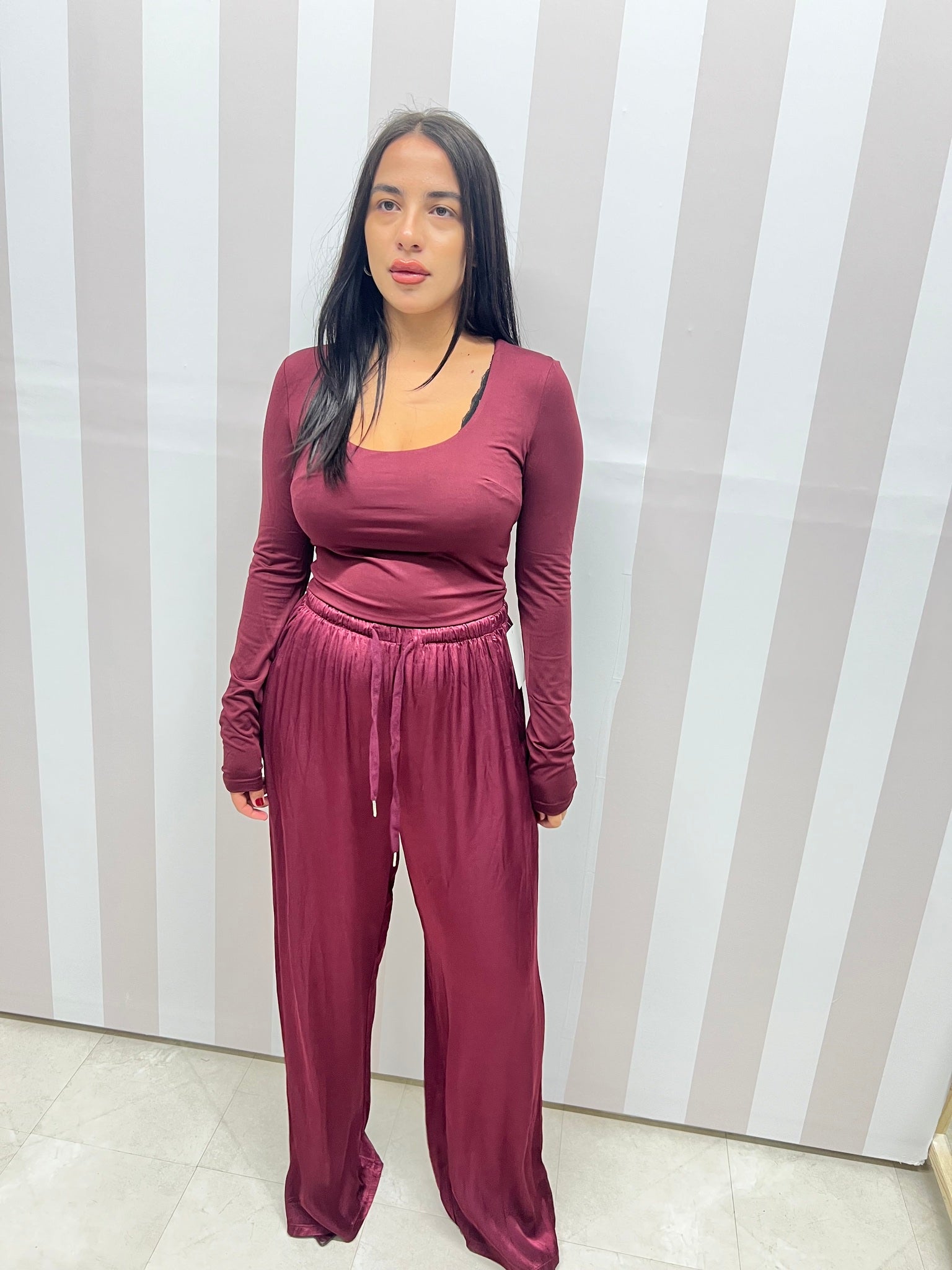 PANTALONI SATIN bordeaux
