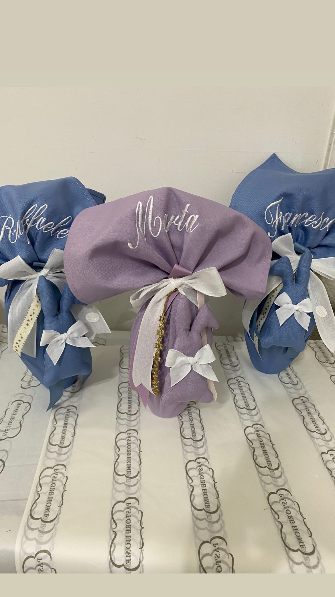 Kit base per avvolgere il tuo uovo di Pasqua comprende tovaglietta,quadrato da tavola personalizzato più nastri nei colori coordinati e coniglio. PUOI PERSONALIZZARE CON NOME,INIZIALI O BUONA PASQUA.