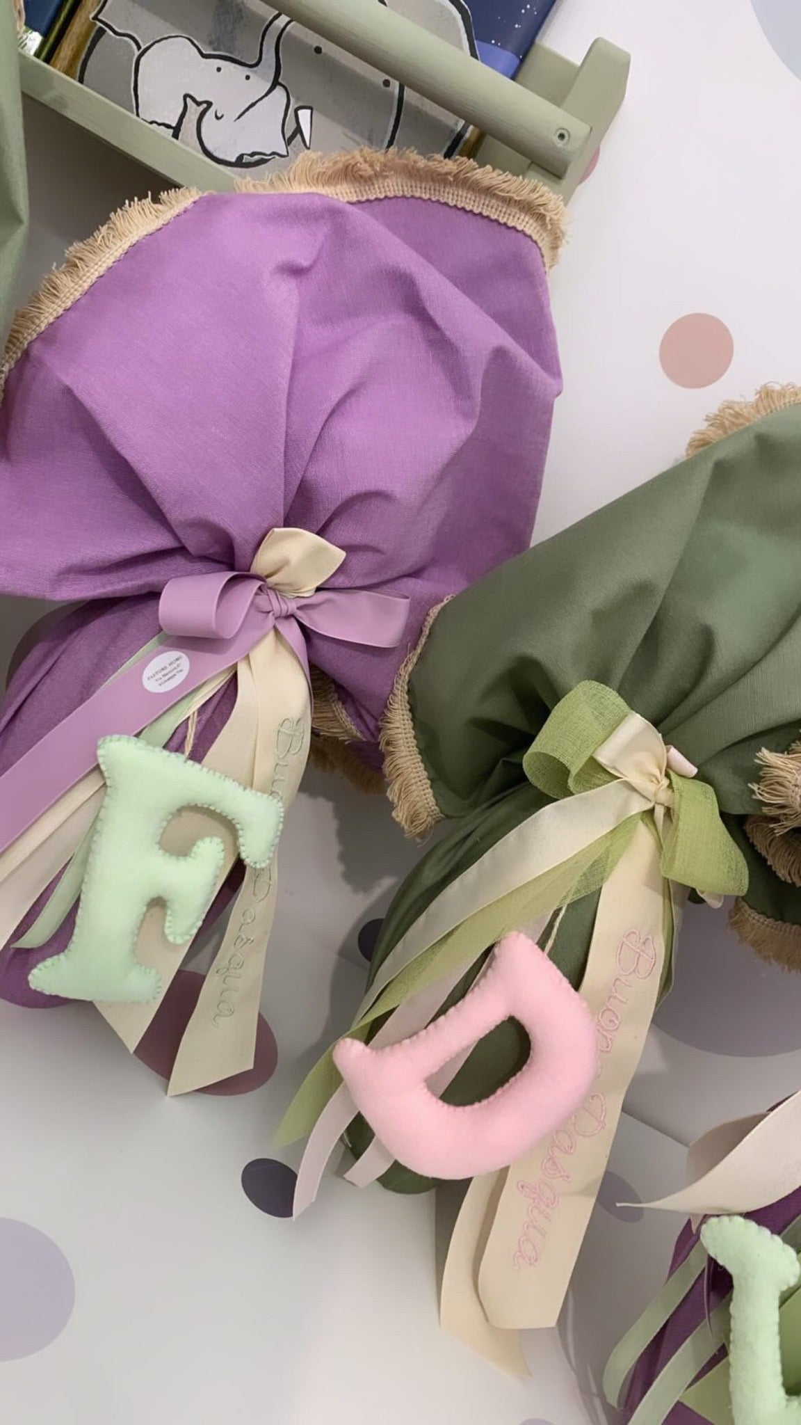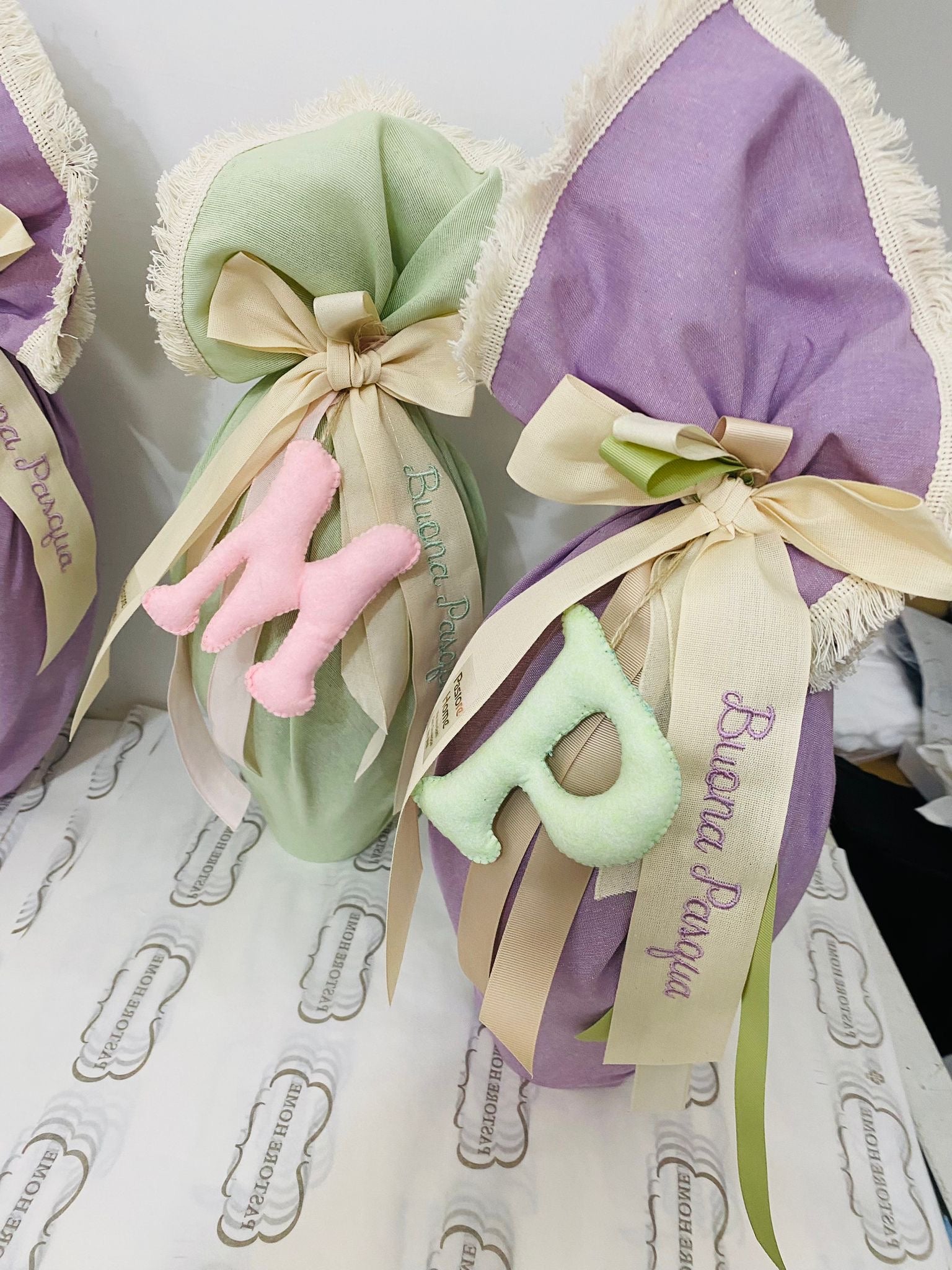 Kit per avvolgere il tuo uovo di Pasqua comprende tovaglietta,quadrato da tavola con passamaneria frange e lettera in pannolenci  più nastri nei colori coordinati. PIÙ NASTRO CON SCRITTO BUONA PASQUA Non è incluso l uovo di cioccolato