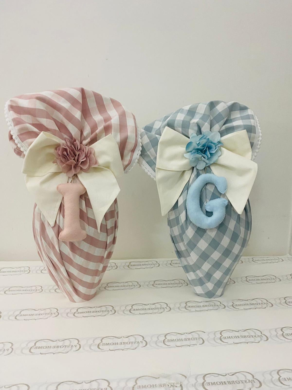 comprende tovaglietta,tovaglia da tavola con pon pon e gadget lettera in pannolenci e fiore e fiocco in coordinato.