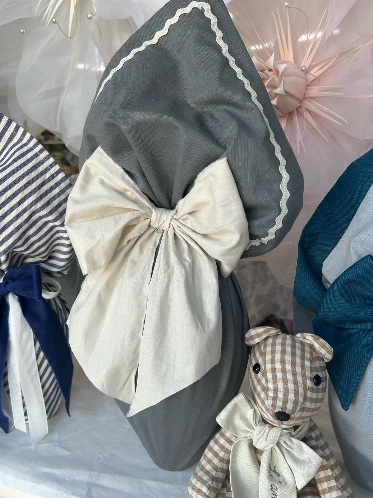 Kit per avvolgere il tuo uovo di Pasqua , comprende tessuto con trinetta e fiocco in coordinato . Personalizzabile con nome inziali o Buona Pasqua
