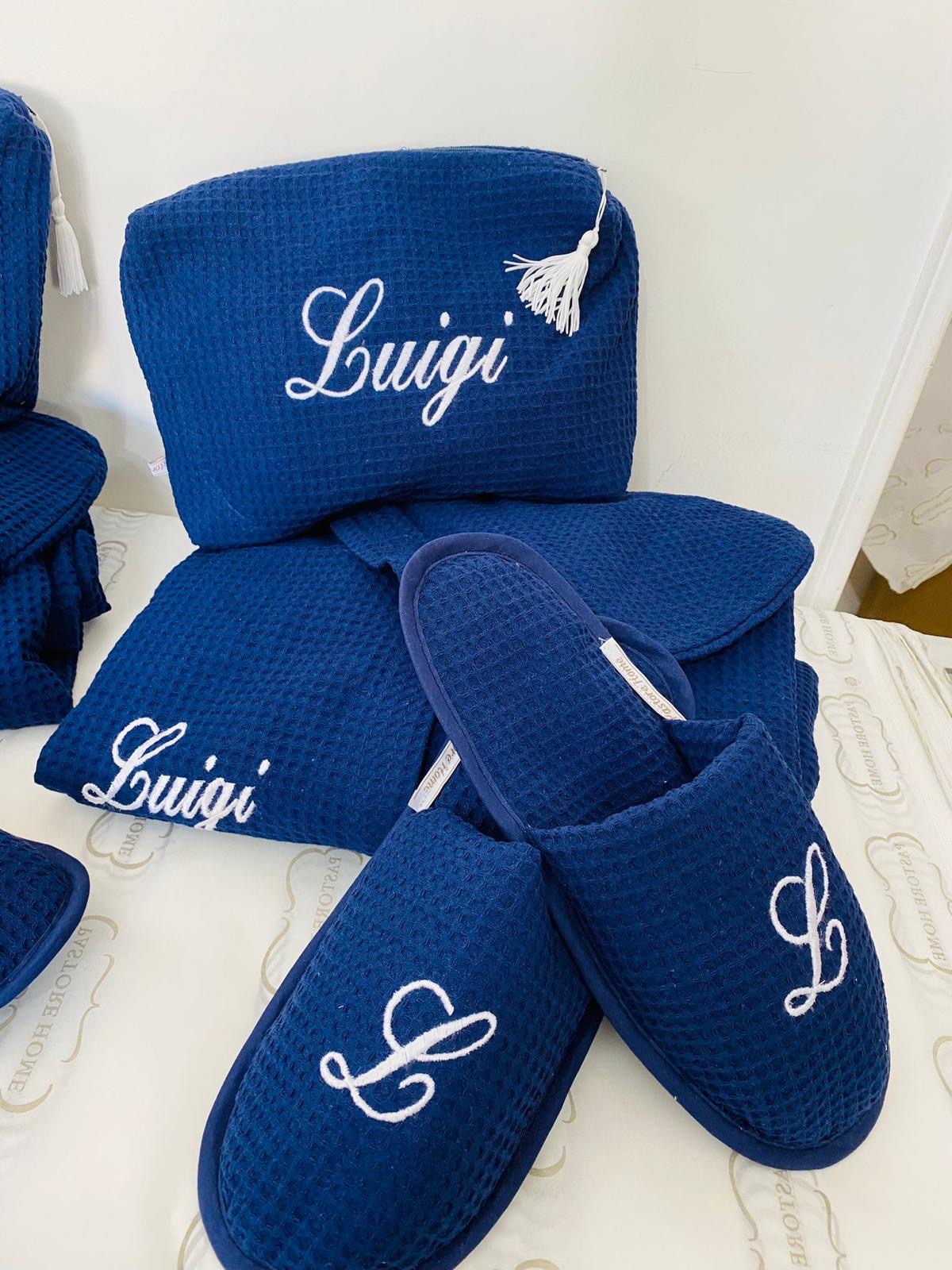 Set sartoriale nido d ape composto da beauty ,ciabatte da camera e accappatoio.