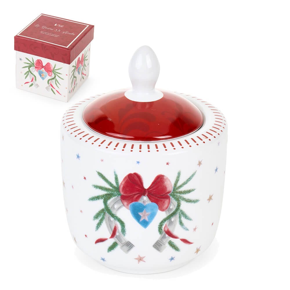 Zuccheriera in ceramica con decoro natalizio . Linea la giostra di Amelie di nuvole di stoffa