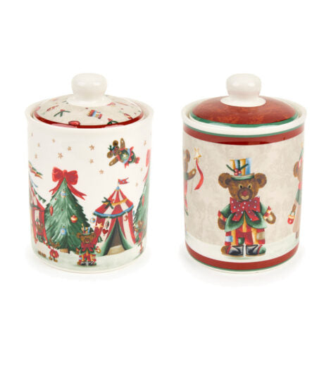 Barattolo con coperchio in due decorazioni natalizie , collezione bear WONDERLAND nuvole di stoffa