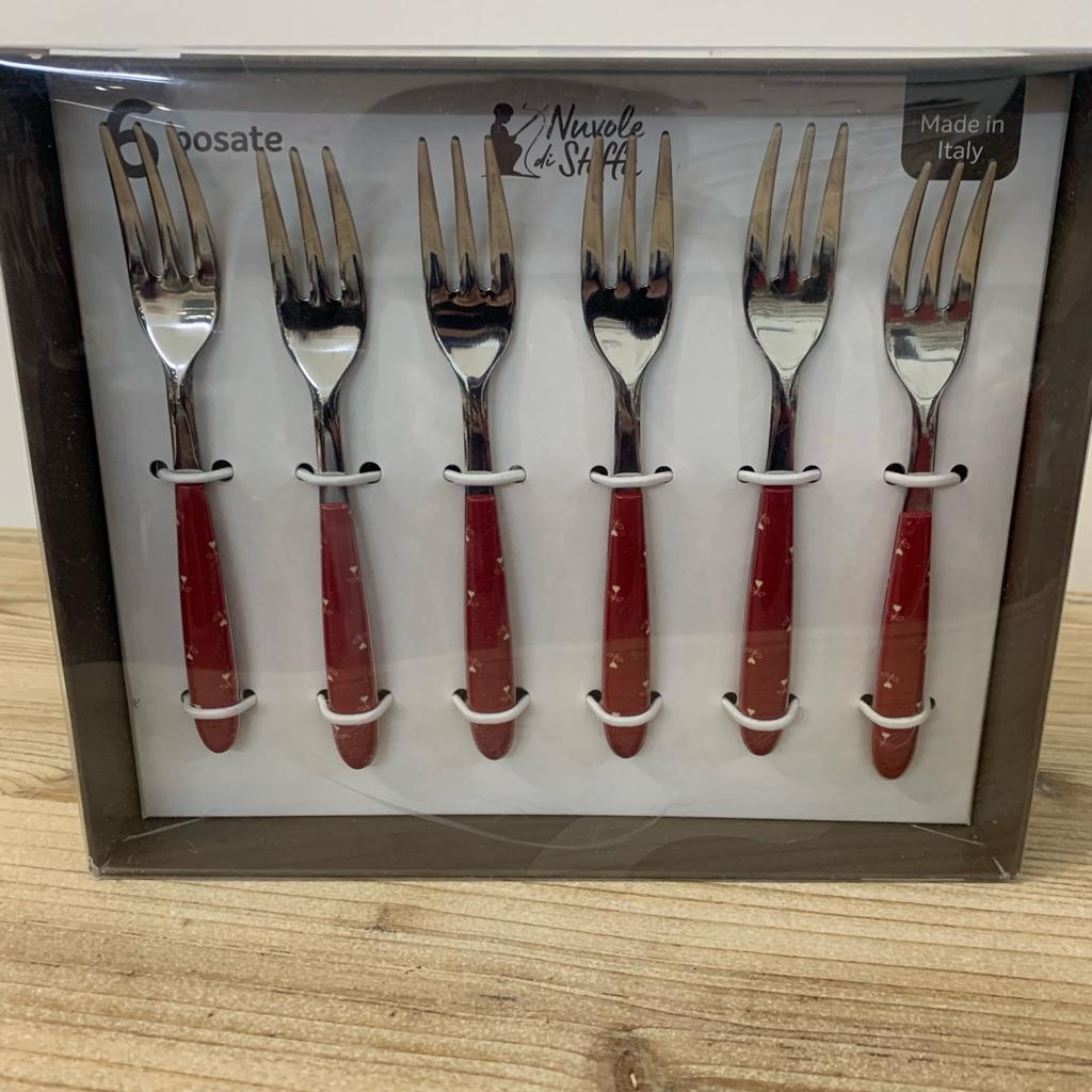 Forchette rosse con decoro. Set da 6 nuvole di stoffa